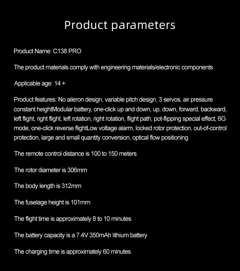 C138 PRO ブラシレスバージョン リモートコントロール ヘリコプター:製品説明