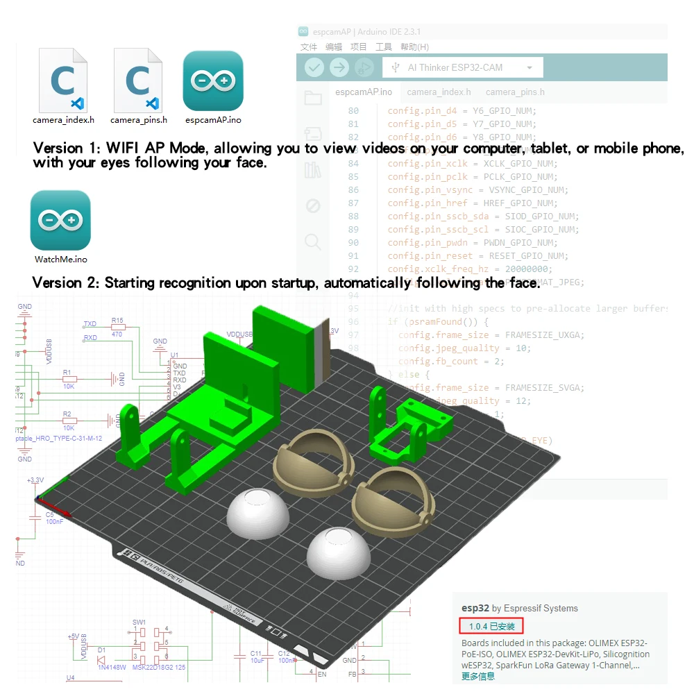 WatchEye ESP32 カメラ バイオニックアイ 顔追跡 カメラ 顔追跡 ESP32CAM アイ DIY キット オープンソース ロボット プロジェクト