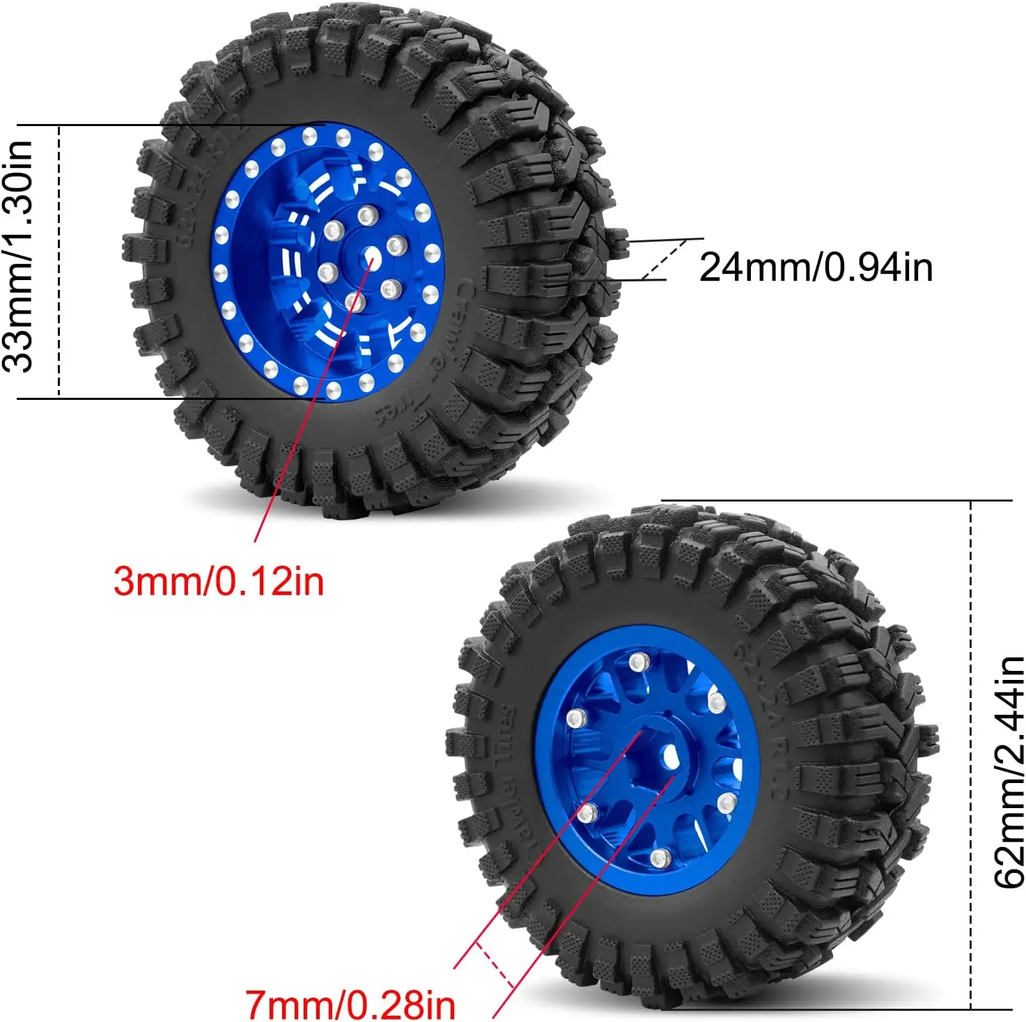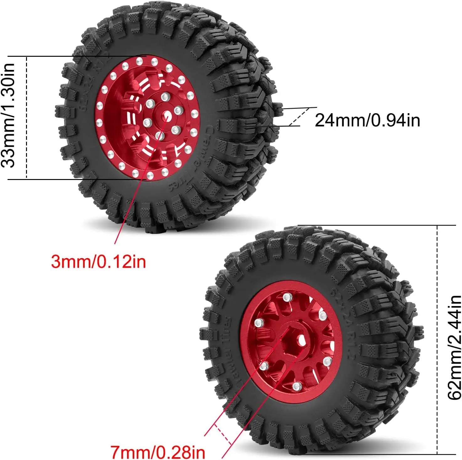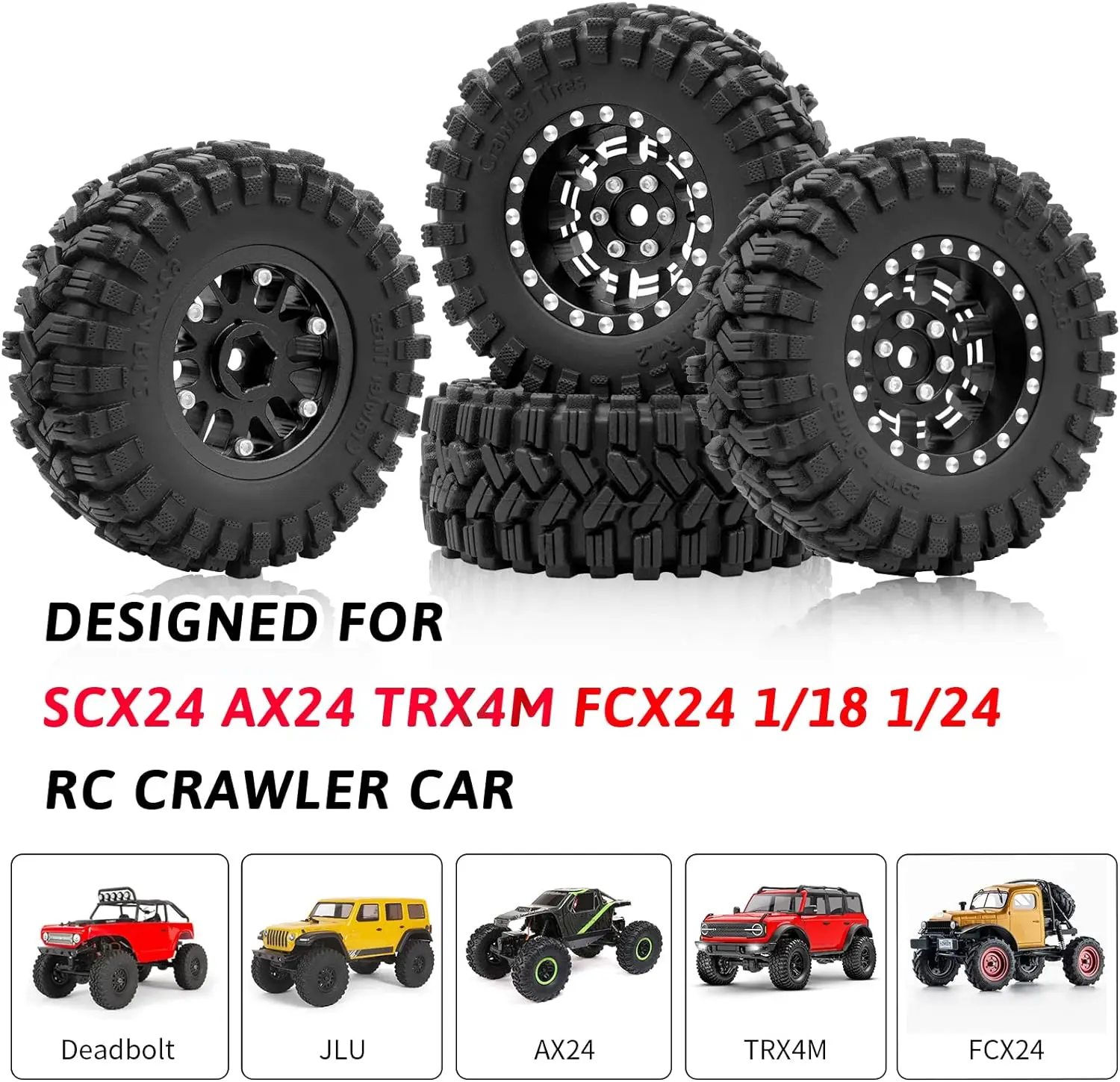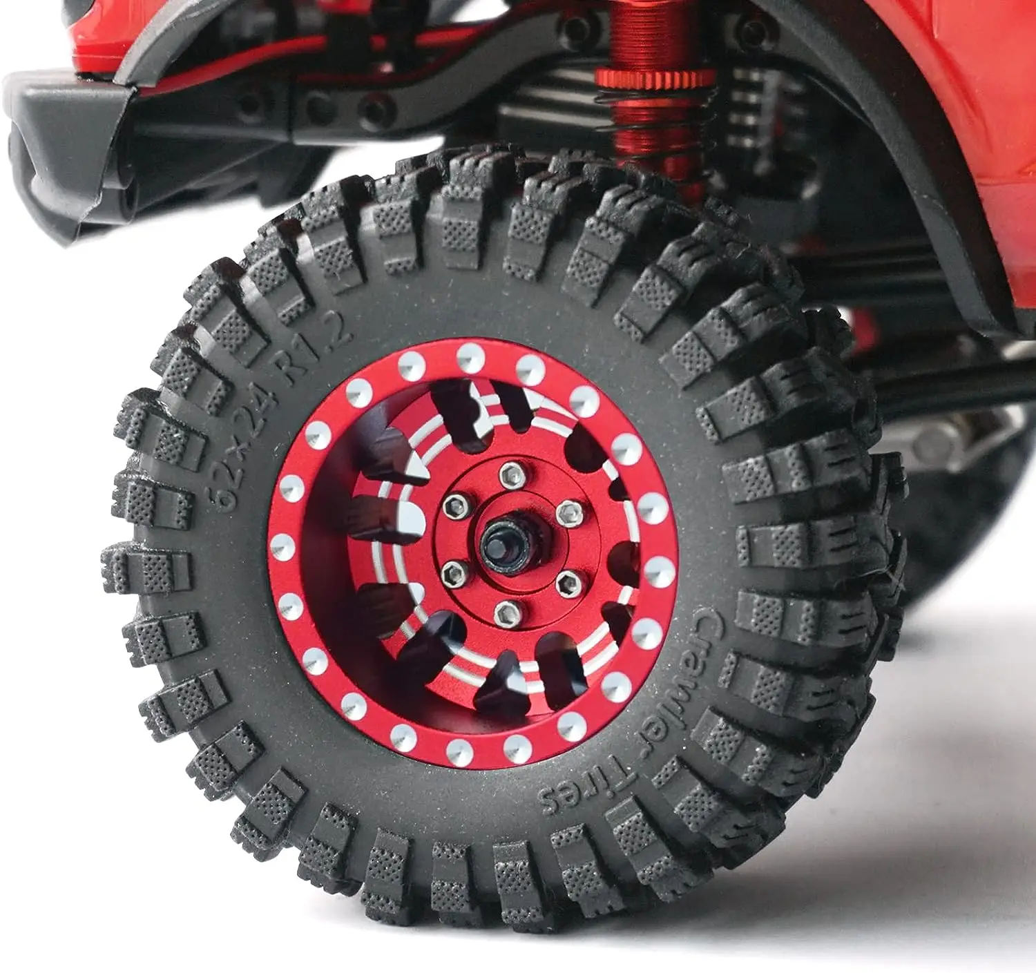 1.2インチ ビードロック ホイールタイヤセット 7mm ネガティブオフセット ホイールリム TRX4 M SCX24 FCX24 AX24 1/24 1/18 RCクローラーカー用 62 * 24mm