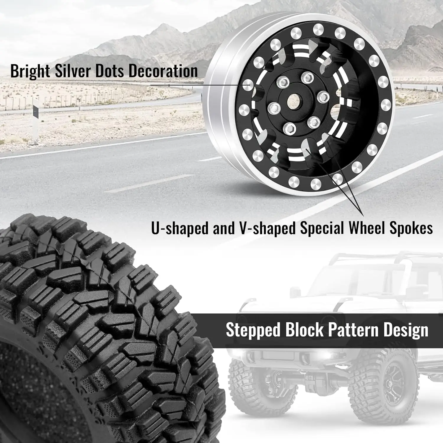 ?【1.0プラス ホイールとタイヤ】これらの1.0プラス ホイールの実際のサイズは1.2インチで、はるかに強力です。また、より優れたハンドリング性能とよりエレガントな外観を提供します。