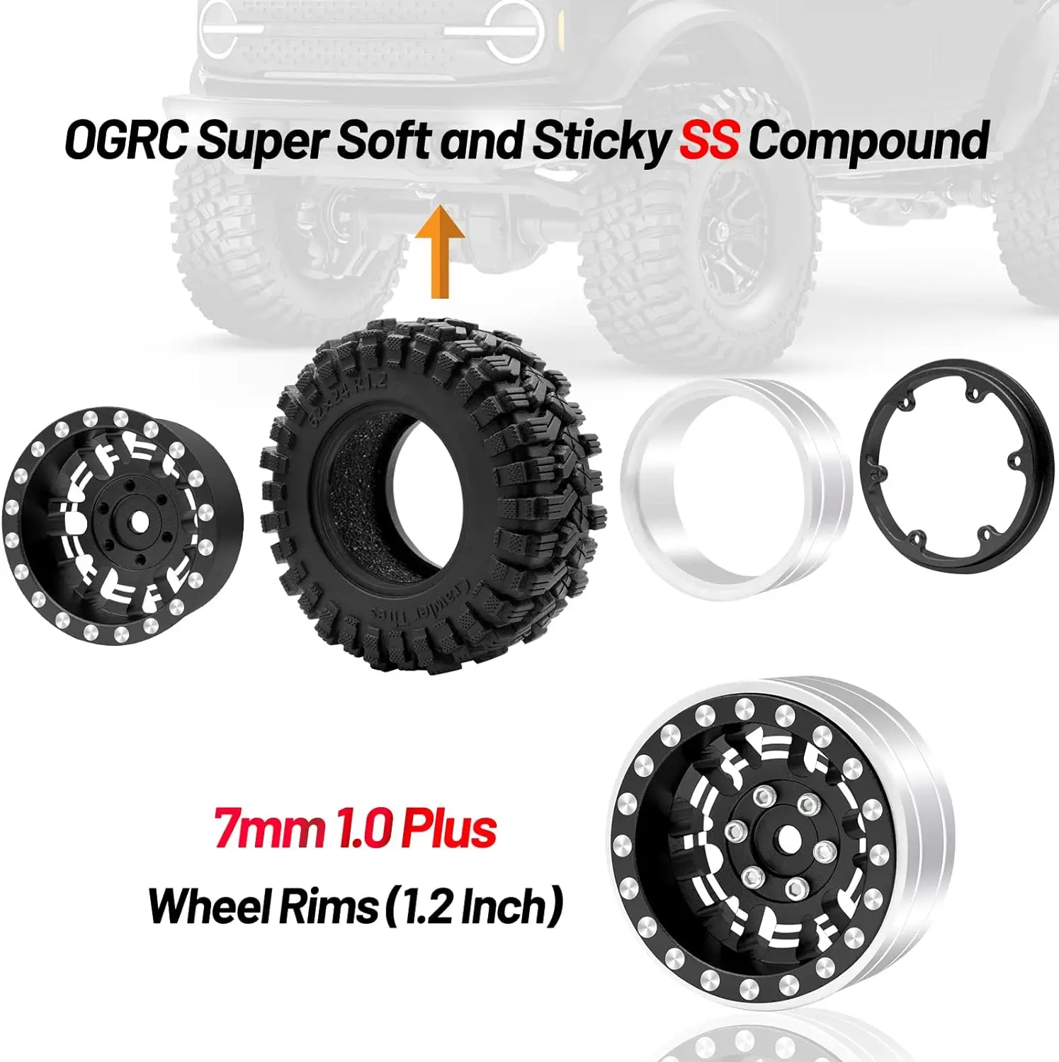 ?【優れた素材】1.0クローラータイヤは、超ソフトなSSコンパウンドで作られており、柔らかく粘着性の高い高接着により、想像を絶するグリップを提供します。 ホイールリムはアルミニウム 合金 素材で作られています。