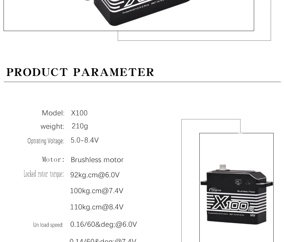GXservo 100KG サーボ 大トルク 高電圧 アルミニウム シェル メタル ギア ブラシレス モーター 1/5 RC カー 大型モデル用