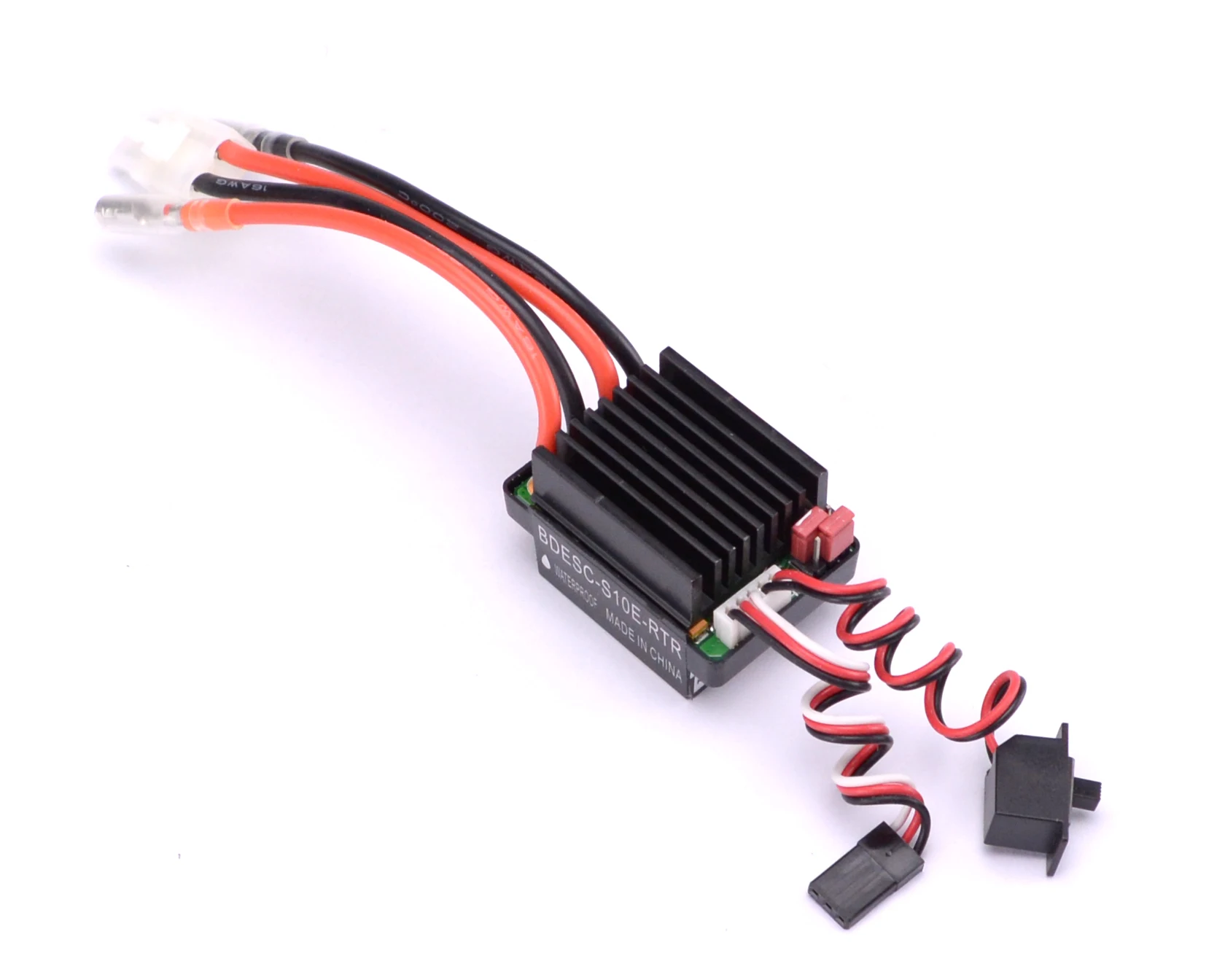 モーターに接続すると、最大 320 アンペア (順方向) または 160 アンペア (逆方向) のモーター DC 電流を供給できます。内蔵のバッテリー エリミネーター回路 (BEC) は、モーターのバッテリー レシーバーに電力を供給し、モーター電力を自動的にカットオフして、バッテリーがなくなるとレシーバーの電力を節約します。小型でパワフルなので、さまざまなタイプのボートや車で使用できます。