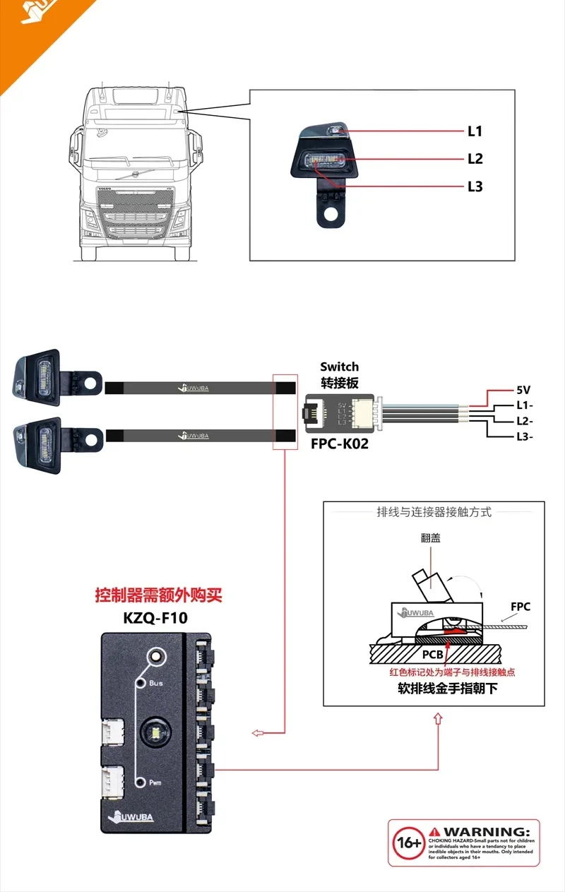 [FPC K06] JUWUBA RCトラックルーフライト照明制御ボード 1/14 タミヤ SCANIA 770S R620 ボルボ FH16 BENZ Arocs MAN TGX車用 S22d9212491055_2