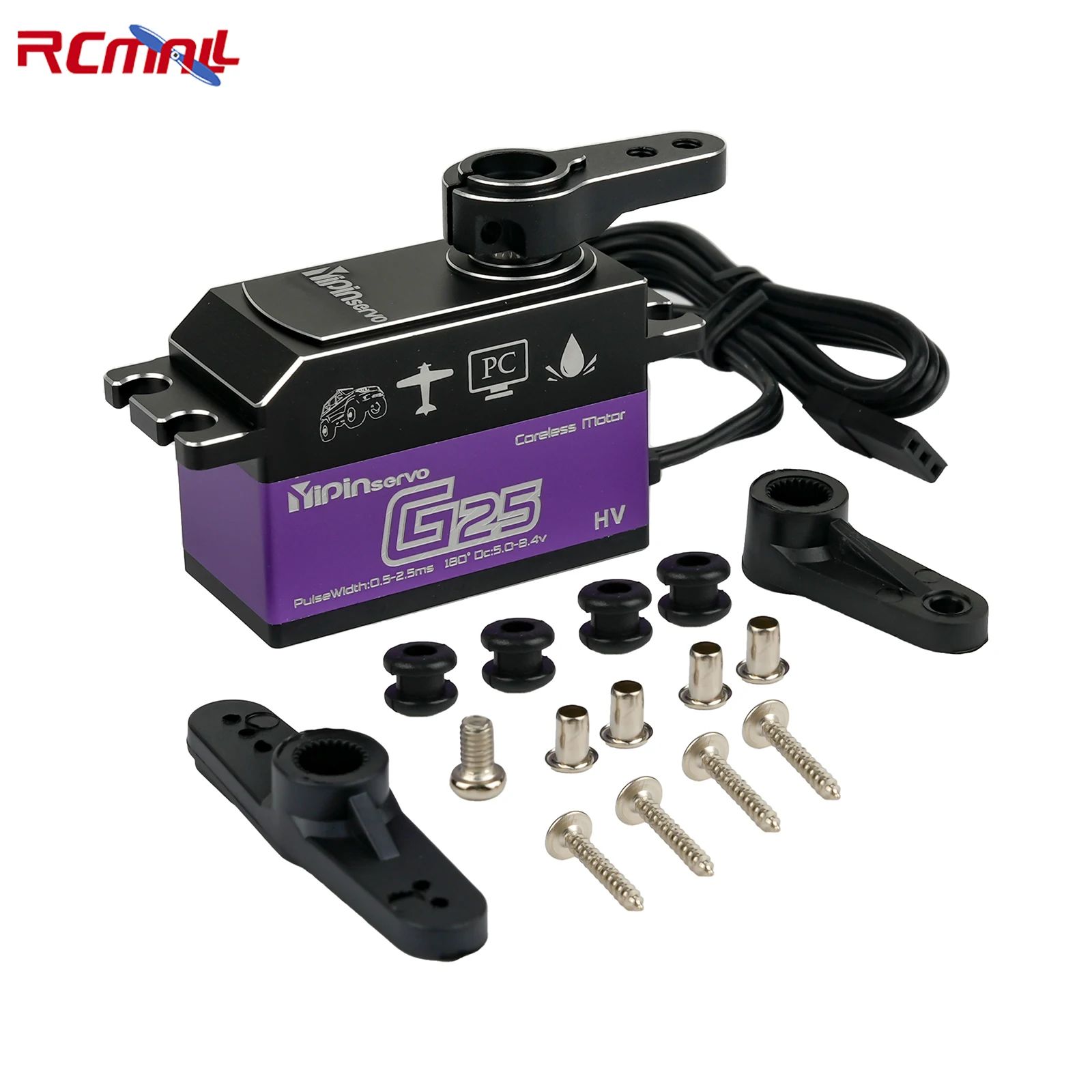 高性能な25KGデジタルサーボです。RCロッククローリングカー、ロボット製作、DIYプロジェクト、産業用途に最適です。7.4Vで動作し、180度の動作範囲を持つ高トルクコアレスモーターを搭載しています。
