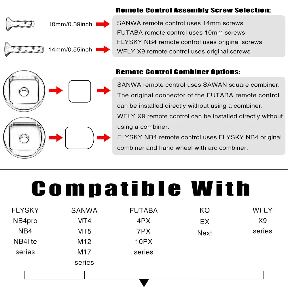 - FLYSKY NB4 リモコン:元の FLYSKY NB4 アダプターと湾曲したハンドホイールアダプターを組み合わせて使用