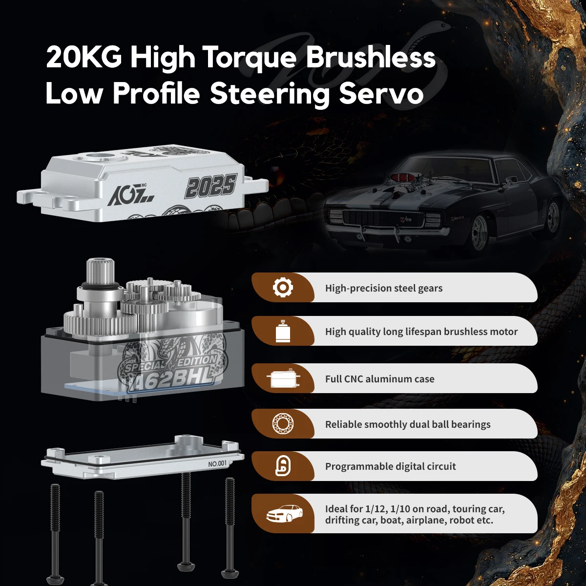 高性能を追求するRCユーザーのために設計された AGFRC A62BHL 2025 Special Edition は、圧倒的なスピードと耐久性を兼ね備えたロープロファイル型ブラシレスサーボです。