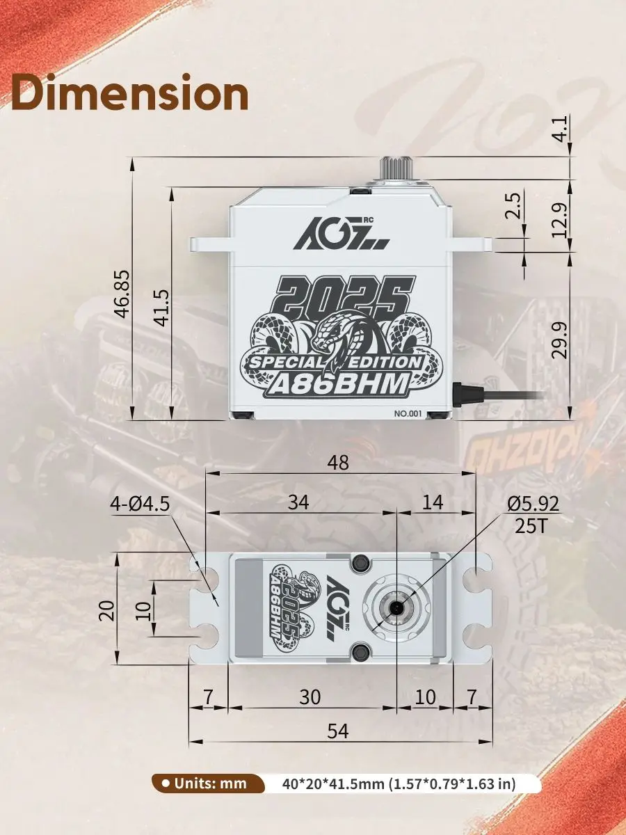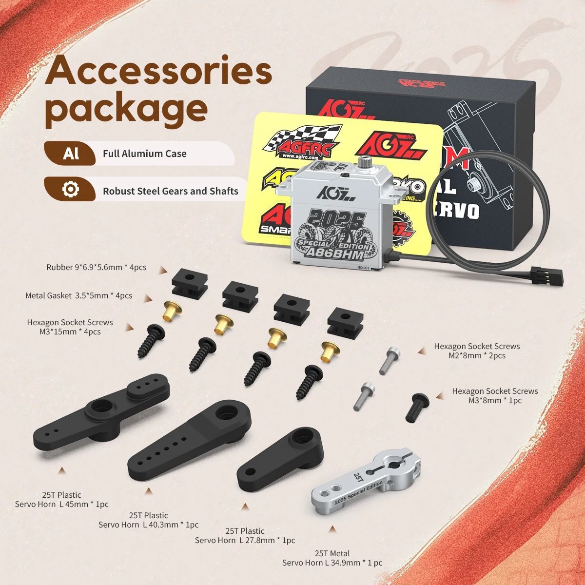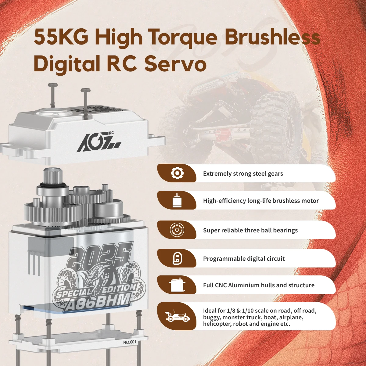 AGFRC 55KG RCステアリング サーボ モーター高トルク - フル メタルギアプログラマブルブラシレスデジタル サーボ 1/8 1/10 RCカー トラック 用 (A86BHM 2025 スペシャルエディション)