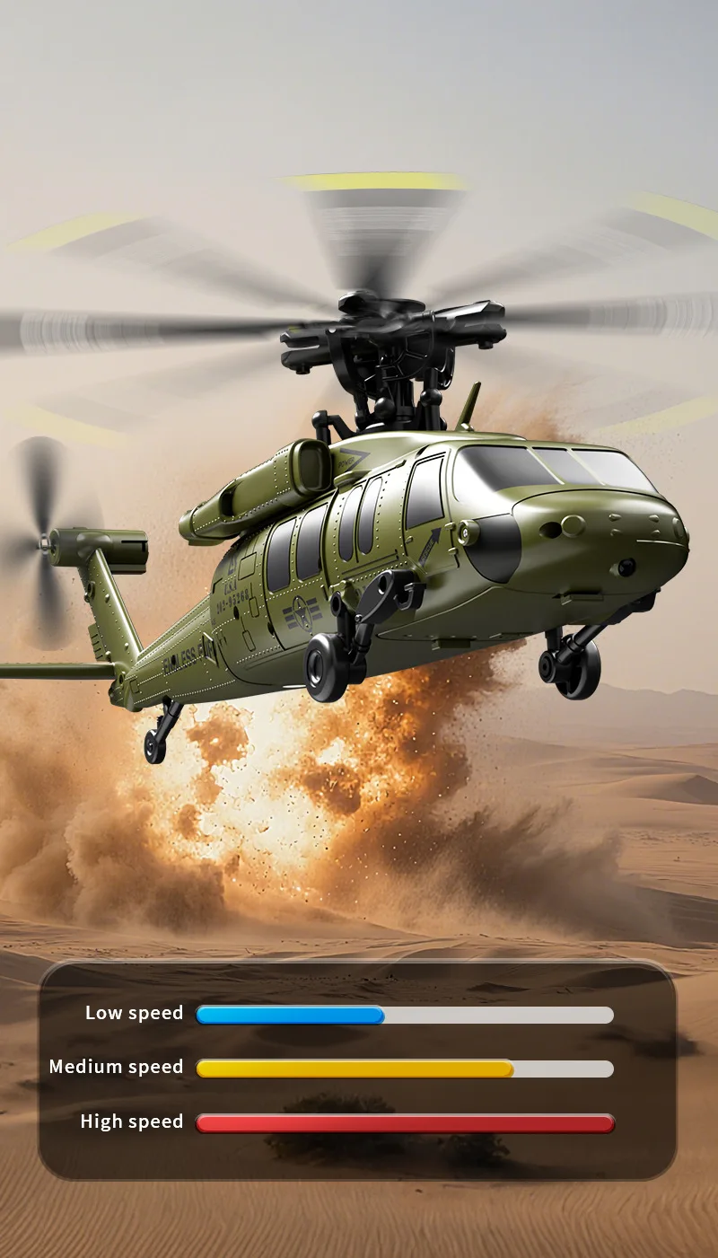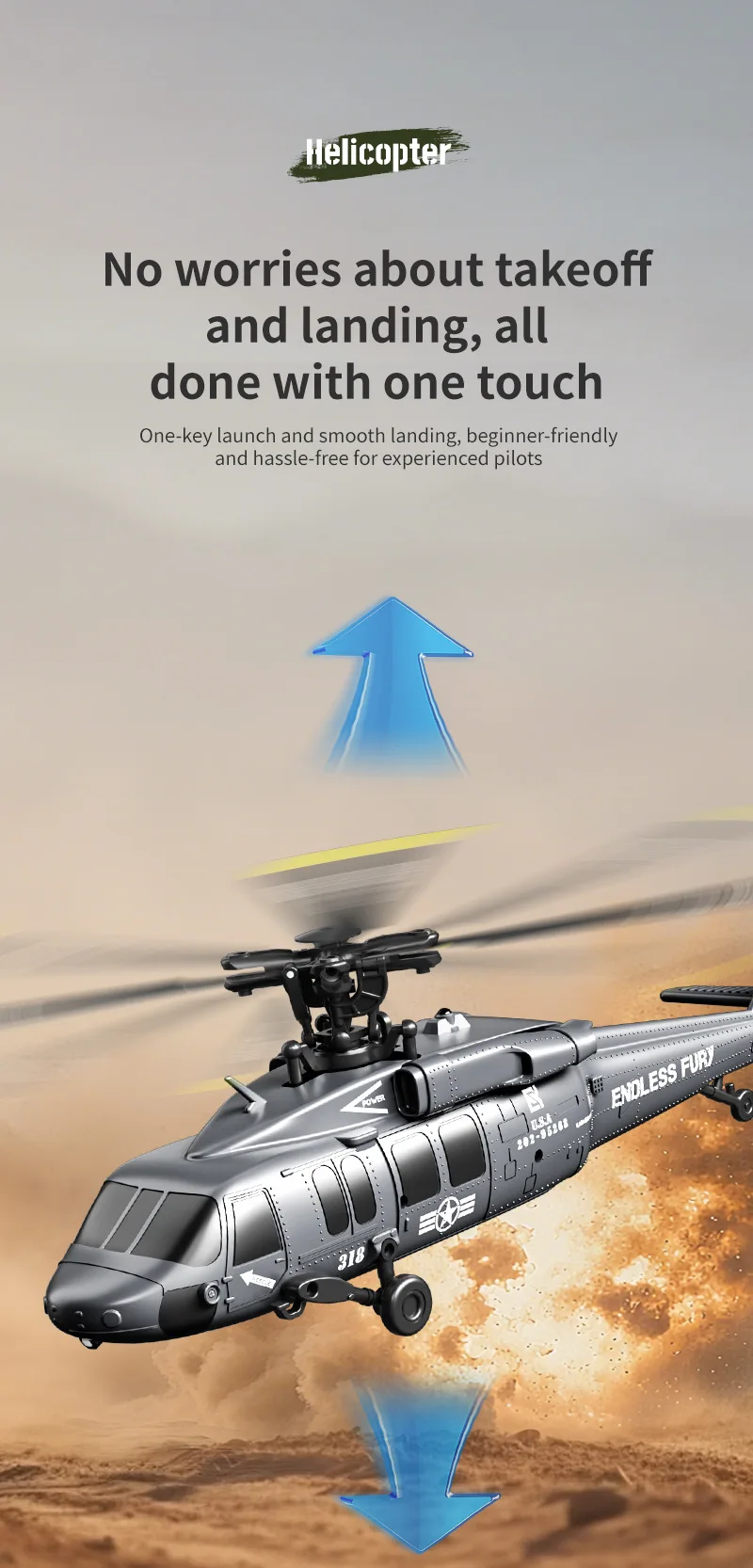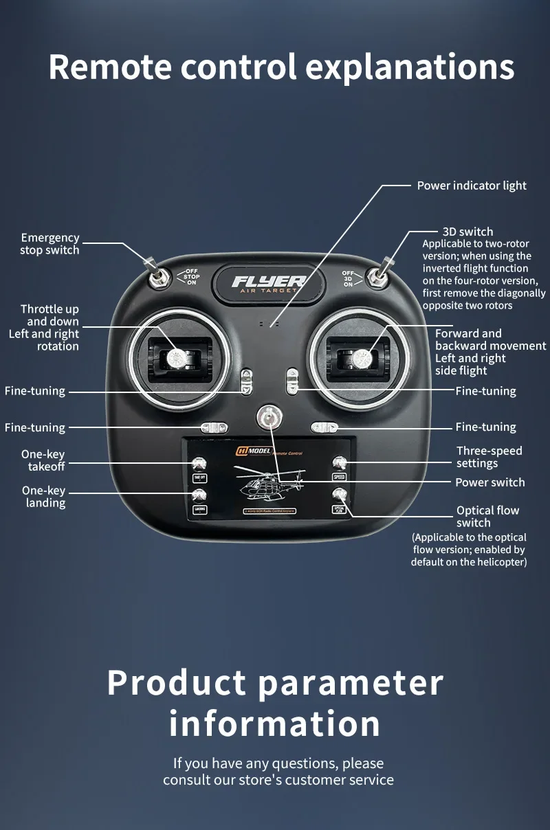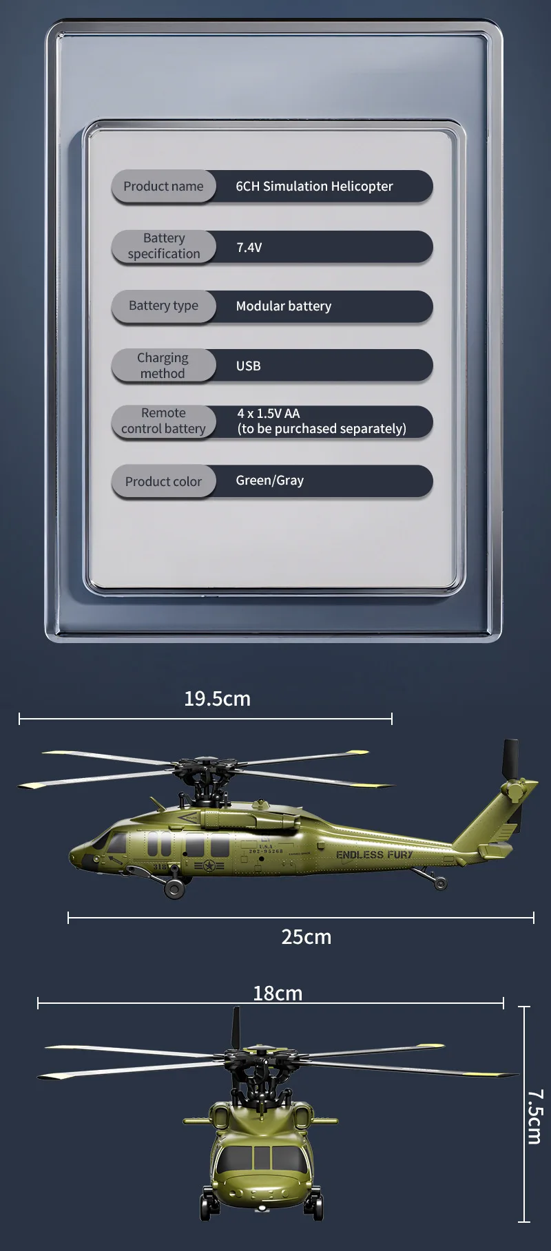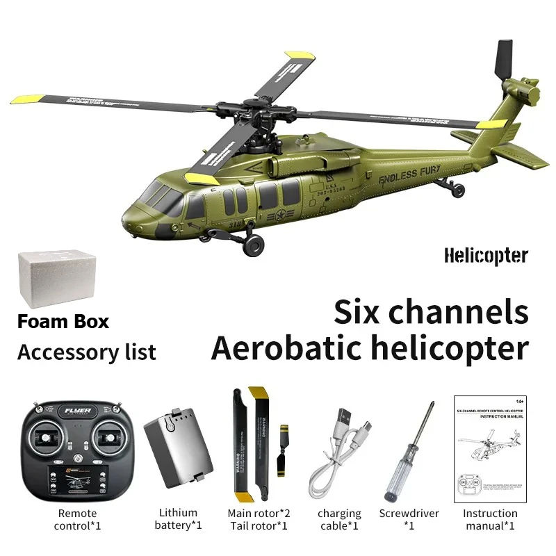 1 6チャンネルには補助設計がなく、プロペラは空気力学の原理を引用して設計されており、強力なパワーと機体の自己安定性を提供し、飛行は非常に安定しています。