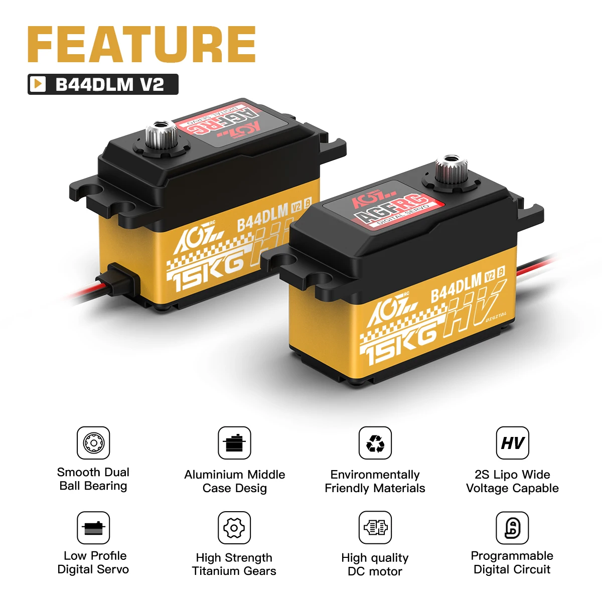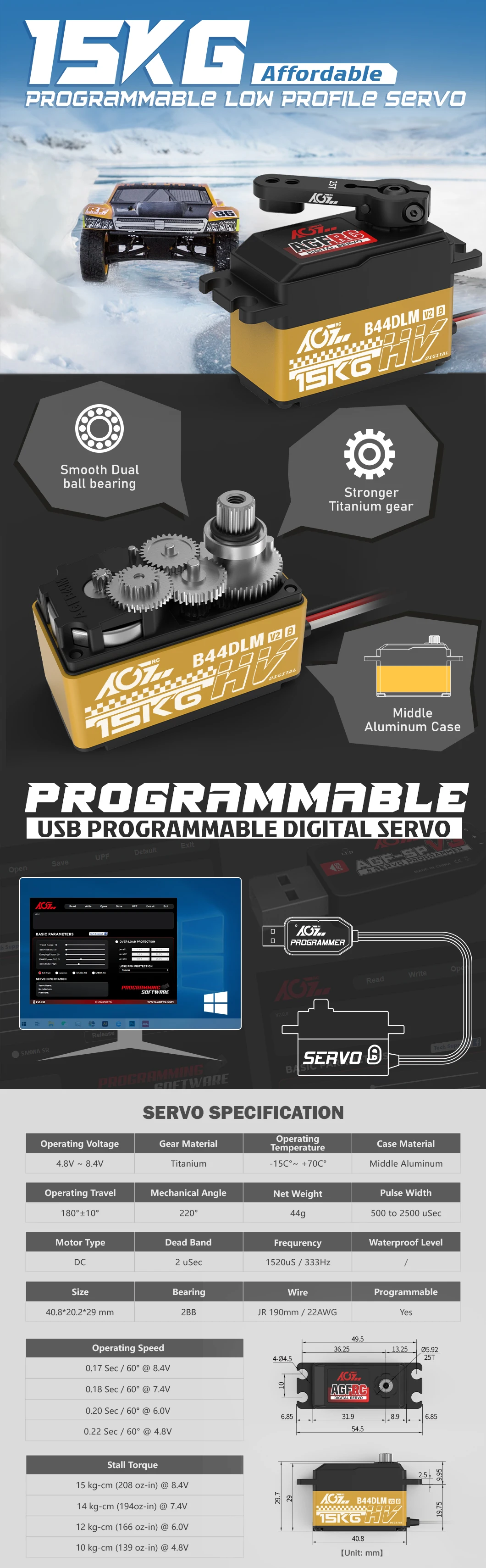 AGFrc 15KGトルク B44DLM V2 0.17秒 高速HVチタンギアDCモーター プログラマブル ロープロファイル サーボ RCツーリングカー用