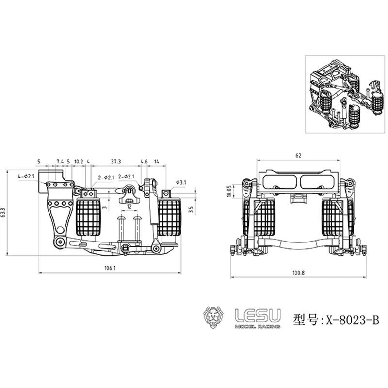 LESU ディファレンシャルロックアクスル用 メタルラバー製リアエアバッグサスペンション RCトラクタートラック ダンパー タミヤ 電動カー Th18262 SMT3