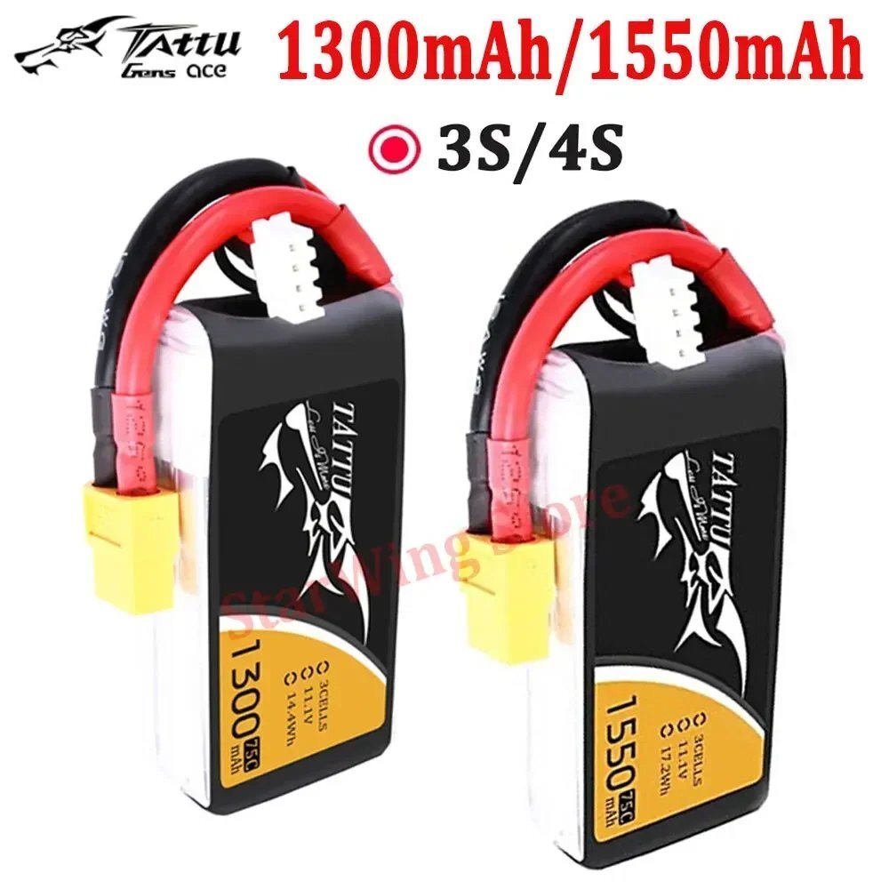 ACE Tattu Lipoバッテリー 1300mAh 1550mAh 3S 4S 75C RCバッテリー XT60プラグ付き RC FPVレーシングドローンクワッドコプター用