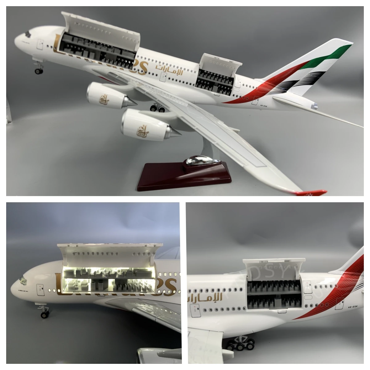 新品 エアバス A380 UAE/エミレーツ モデルプレーン 18インチ 大型モデル飛行機キット LEDライト付き(タッチまたはサウンドコントロール) S20d9304265943