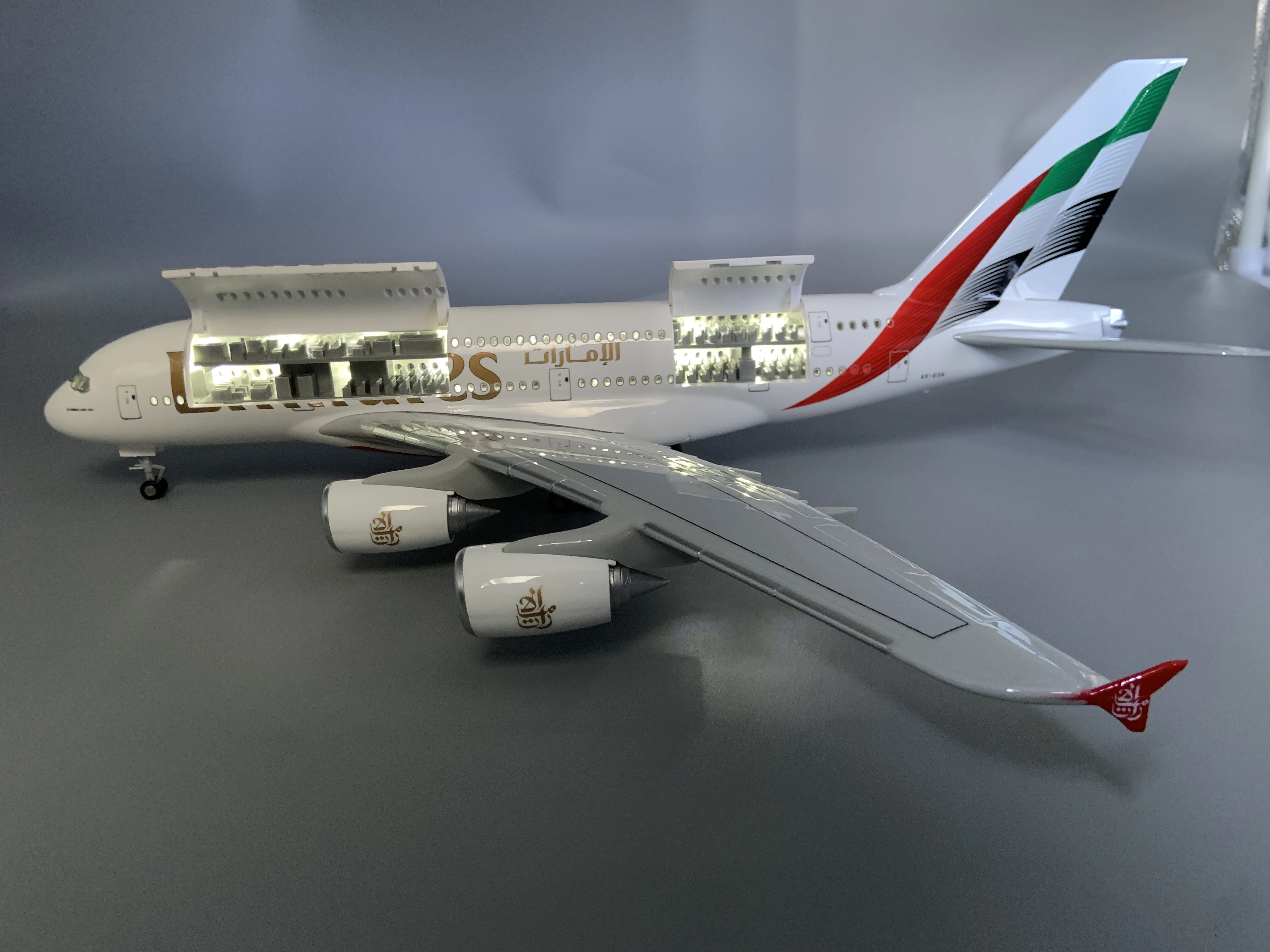 新しいエアバスA380 UAE /エミレーツモデルプレーン18インチ大型モデル飛行機キットLEDライト(タッチまたはサウンドコントロール)付き