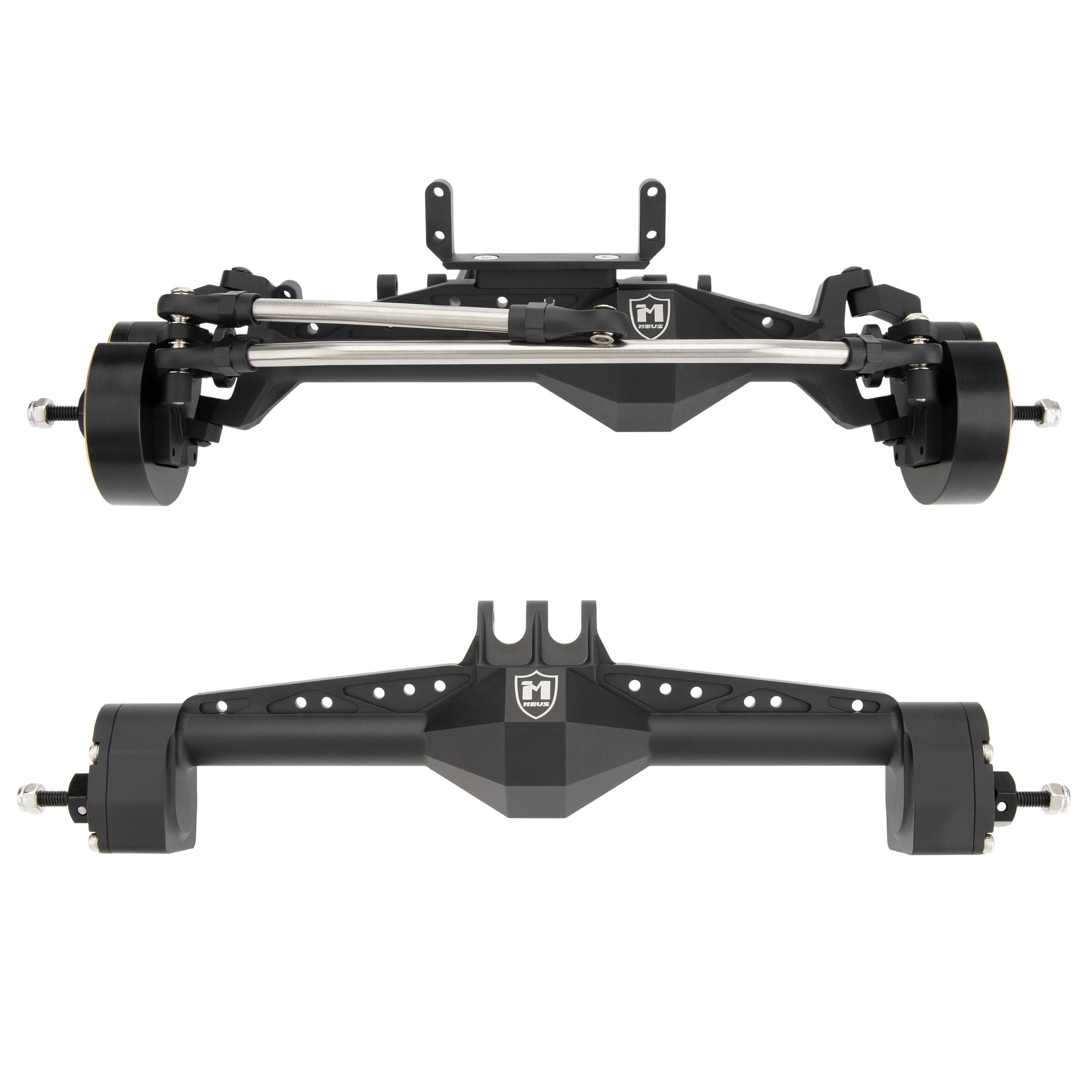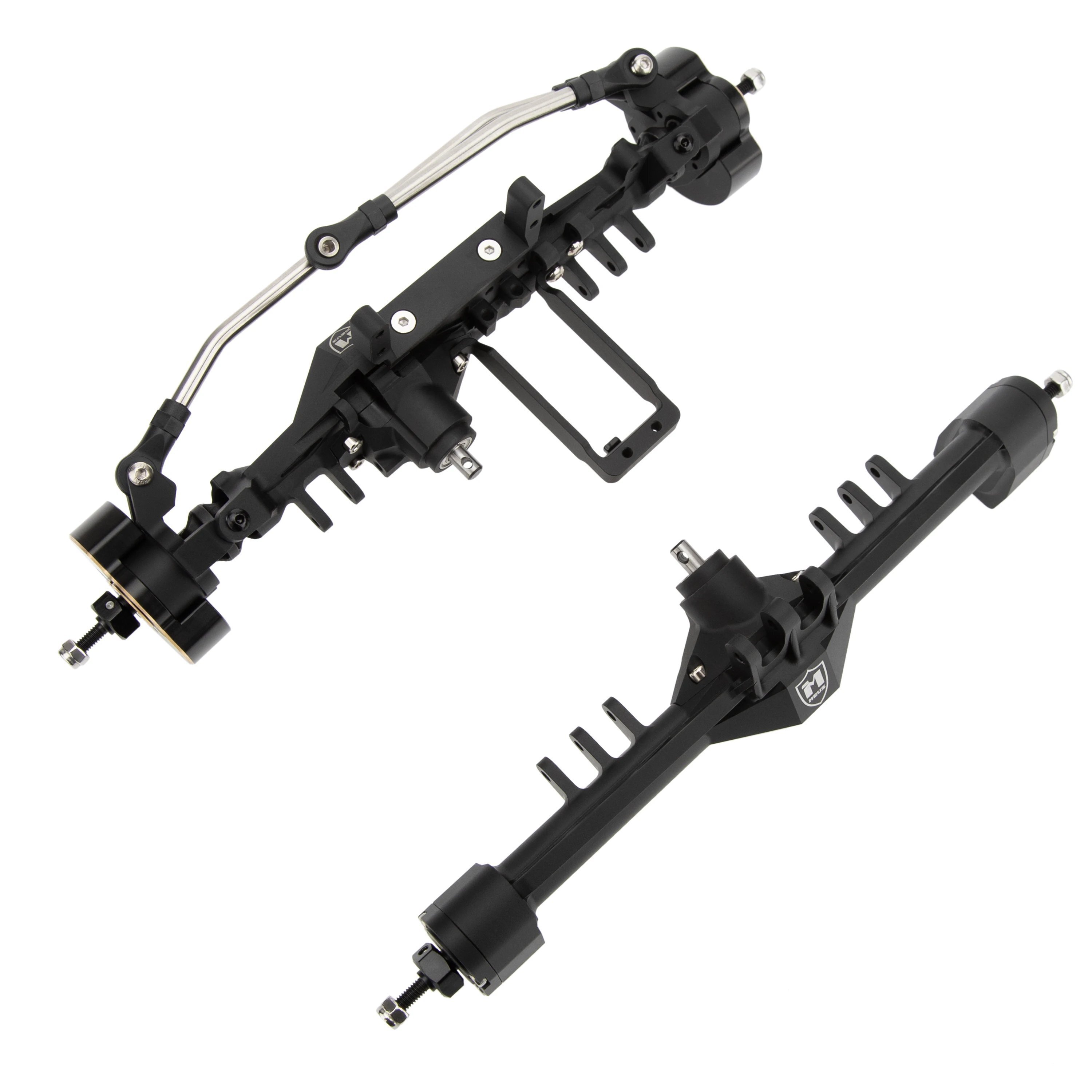 キットにはフロント アクスルとリア アクスルが付属しています。フロント アクスルには、より低い重心を実現して交通量を増やすために、両側に小型の C ハブと 96g の真鍮製アクスル カバーが装備されています。アッカーマン ステアリング構造により、スムーズなステアリングが可能になり、タイヤが横滑りするのを防ぎます。
