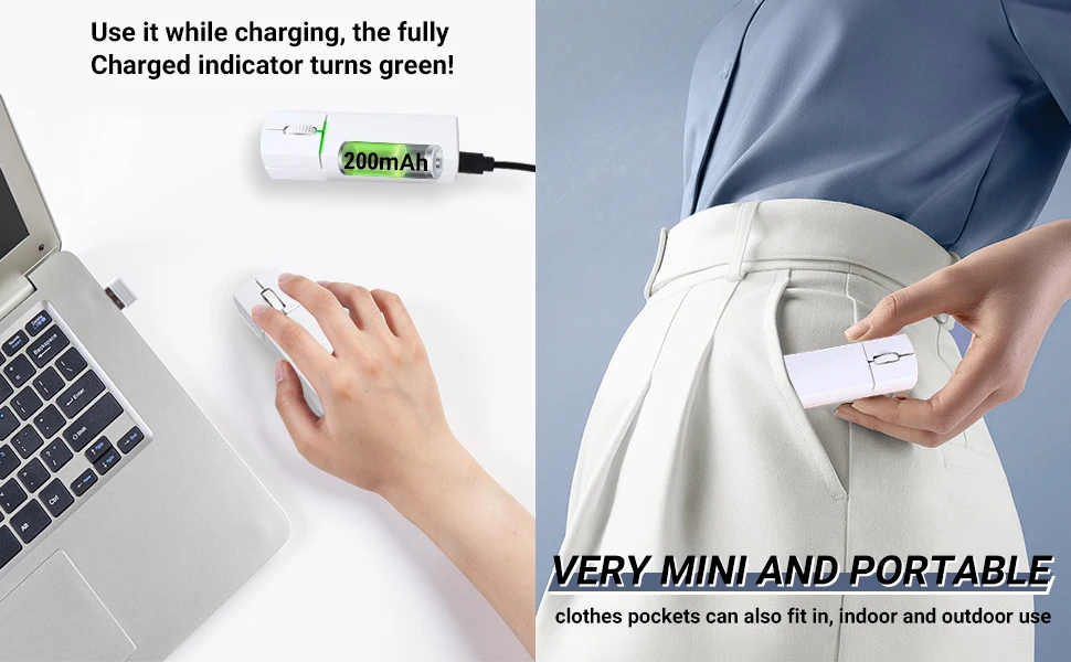 ミニデザインで持ち運びに便利、3モード接続、高効率、多目的。このミニワイヤレス3モードマウスはわずか80gと軽量で、ポケットやバックパックにいつでもどこでも入れることができ、オフィスのニーズを満たします。
