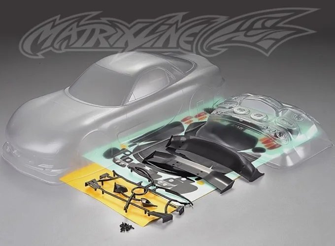 RC RX7 1/10 1:10 RC PCボディシェル 195mm幅 ランプシェードテール 透明 クリーン 未塗装 ドリフトボディ RC hsp hpi trax タミヤ