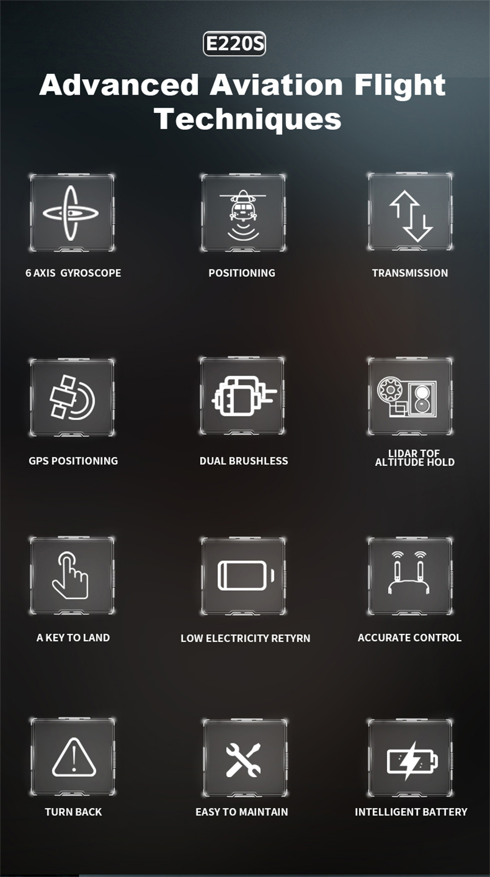 8> インテリジェントフライトコントロールには、GPSモジュール、コンパスモジュール、下部ビジョンモジュール、気圧高度制御モジュールが装備されています。 GPS 安定化、低視力飛行、手動安定化モード、およびワンタッチ リターン トゥ ホーム、低バッテリー、インテリジェント リターン トゥ ホーム、制御不能リターン トゥ ホーム、ワンタッチ着陸、ジオフェンス、ワンタッチ 8 の字飛行、ワンタッチ円飛行などの多機能飛行モードを備えています。