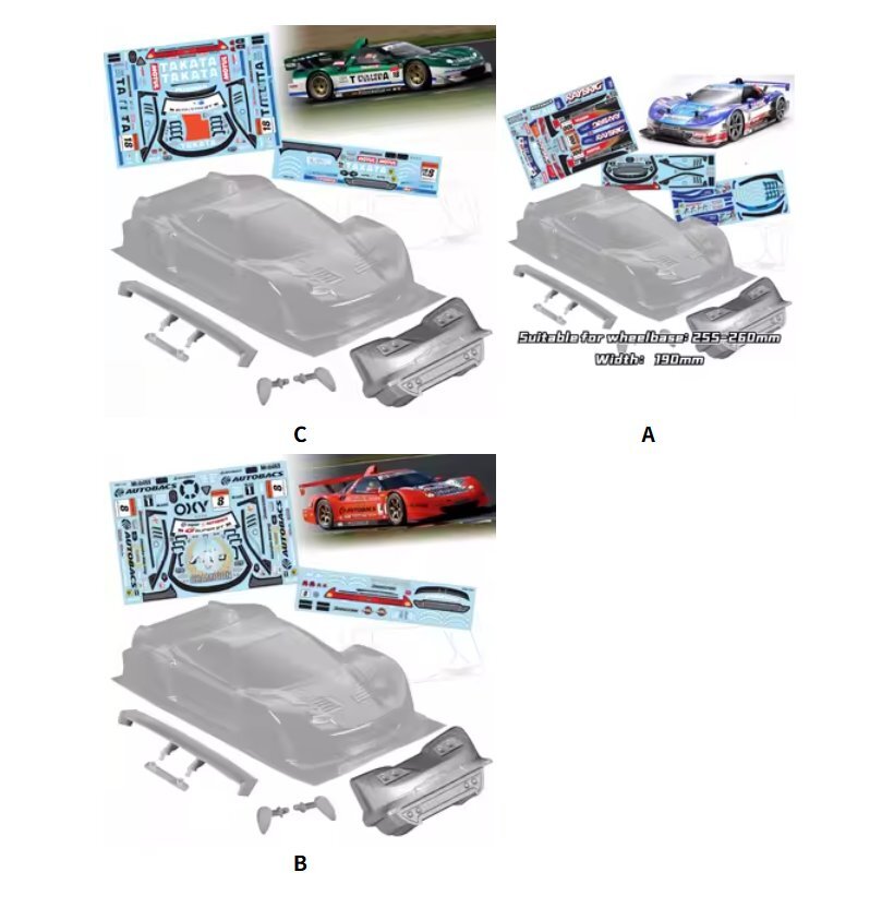 1/10 PC RC NSX 2007 ボディシェル 幅190mm ホイールベース260mm ランプシェードテール 透明シェル チューニング用 Dirft MST ヨコモ HPI HSP S25d7745682054