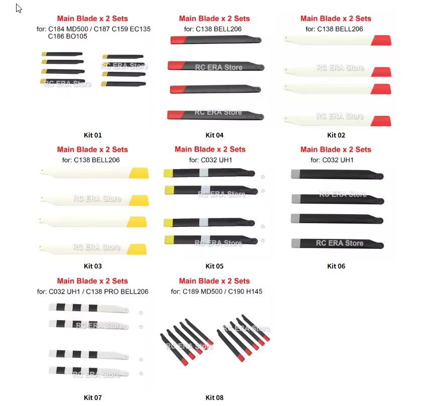 RC ERA メインローターブレード 2セット C032 UH1 Huey C138 Pro Bell206 C184 MD500 C186 C187 C189 C190 RCヘリコプター用 オリジナルパーツ