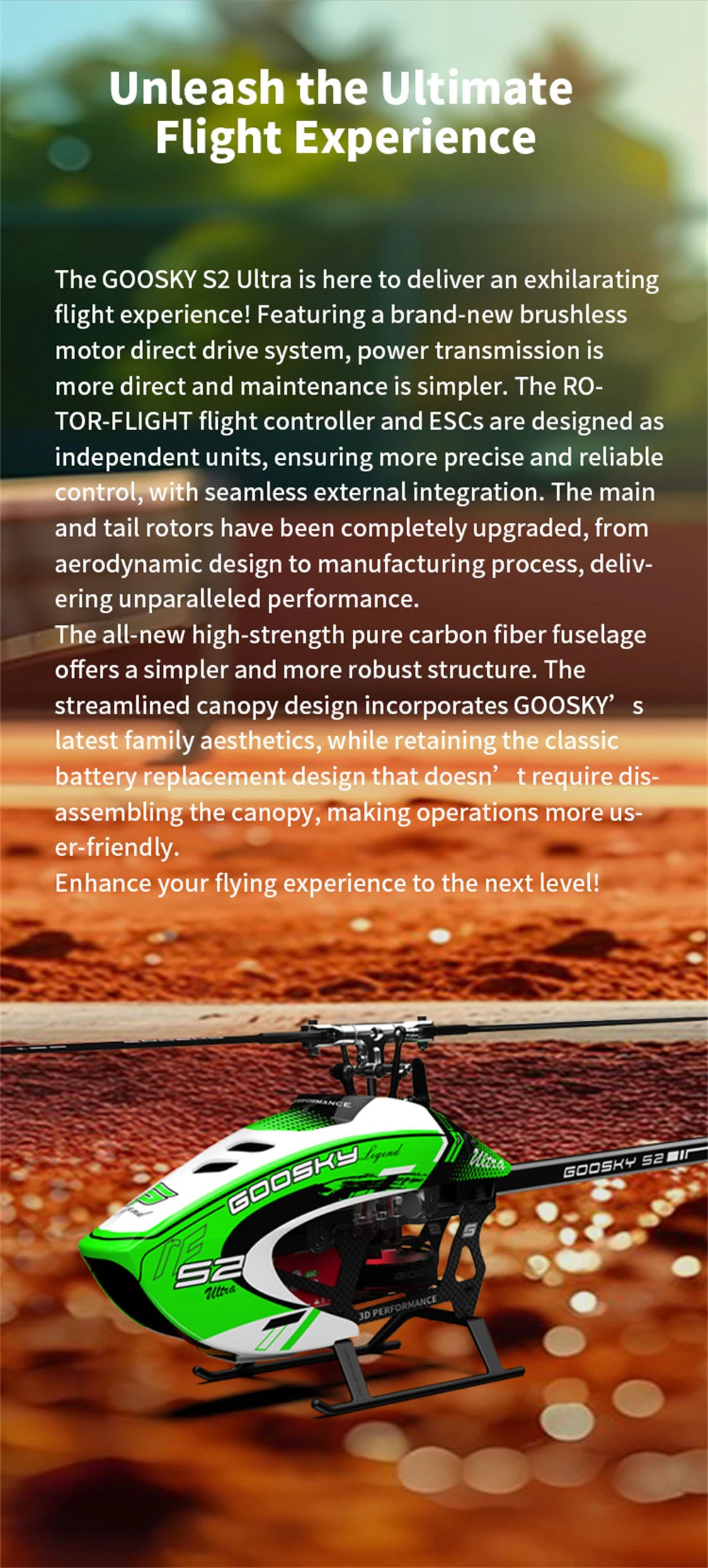 GOOSKY S2 Ultra LEGENDは、究極の体験を追求した革新的な6CH 3D RCヘリコプターです。その比類なきカスタマイズ性とパフォーマンスにより、マイクロクラスヘリコプターの新たな基準を打ち立てます。