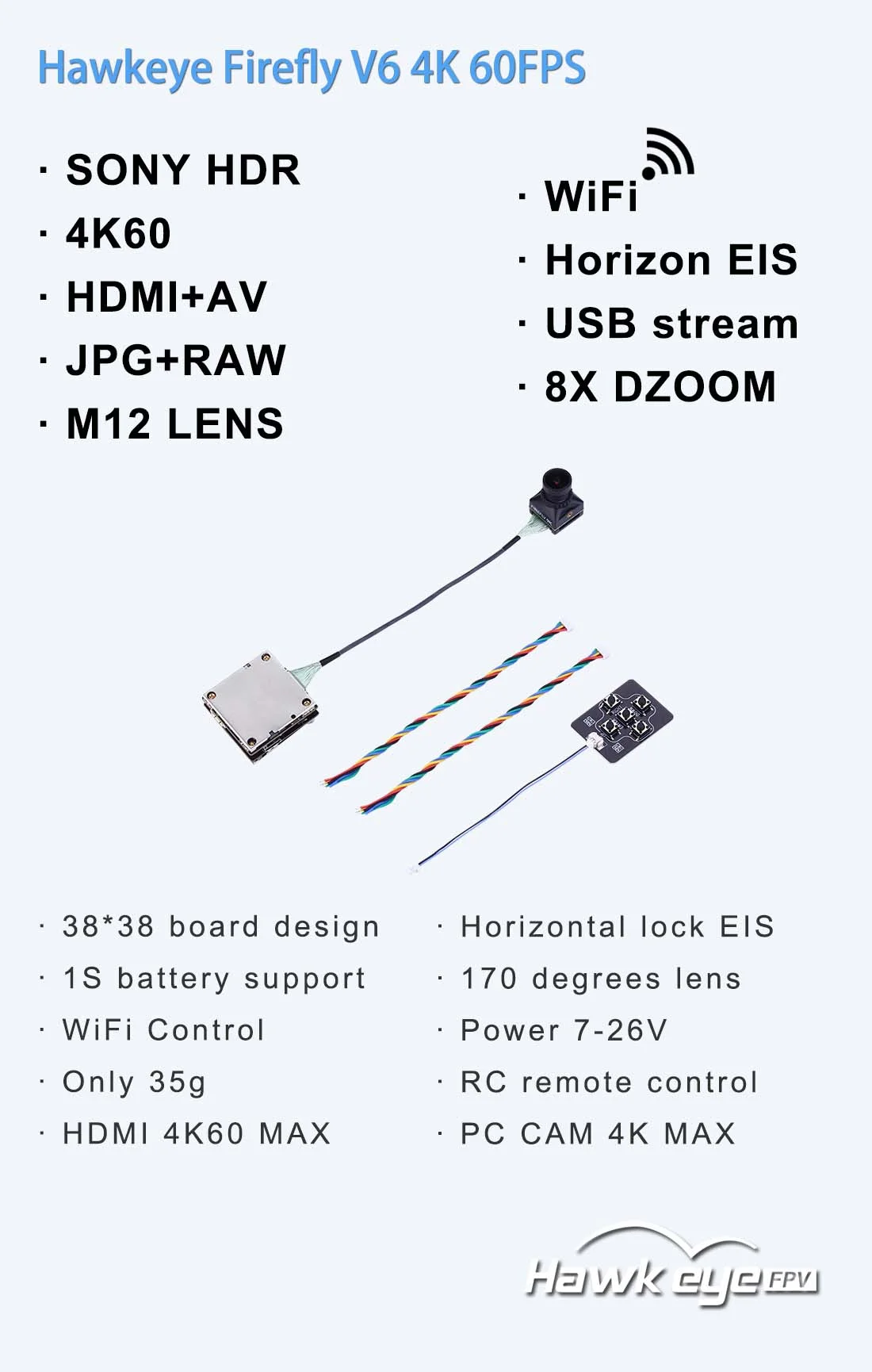 4K-60FPS-WiFi-Sony: Hawkeye Firefly Split V6 LITE 4K 60FPS Sony HDR FPV カメラ - 8 倍ズーム 170° 広角 WiFi HDMI/USB-C RC & Herelink 対応 S25d9339251588