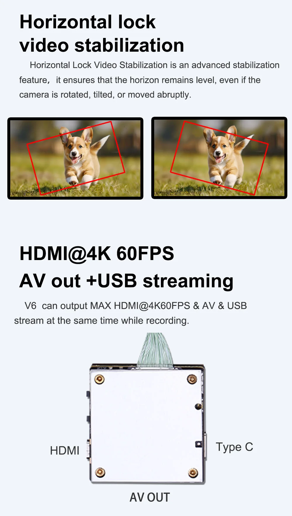 柔軟な出力 - FPVゴーグルおよびDVRとの最大の互換性を実現するHDMI USB-CおよびAV出力オプション。