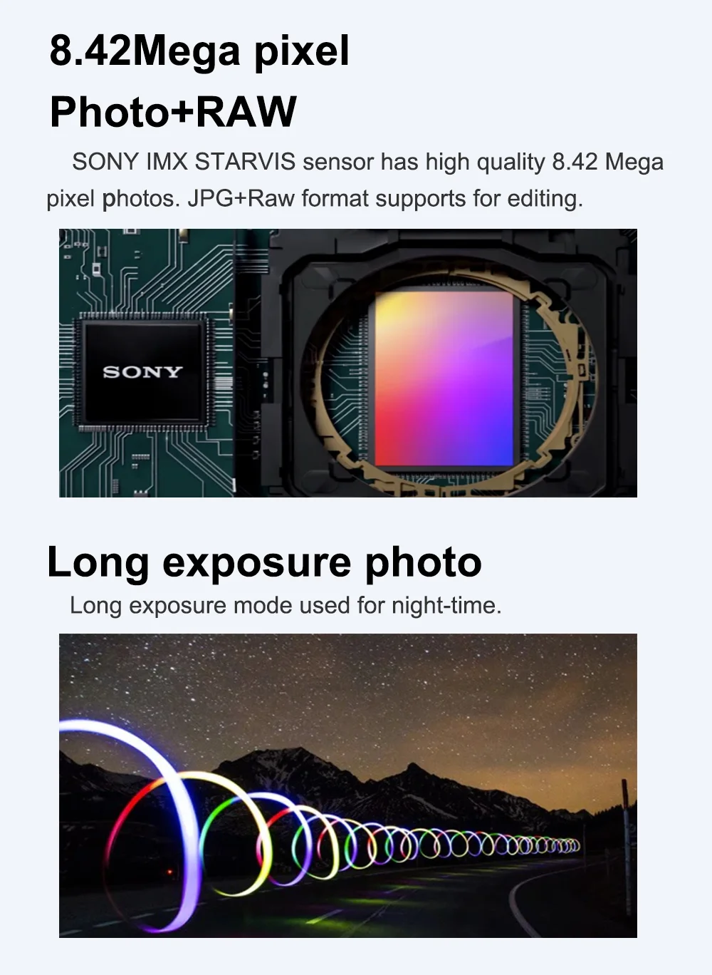 4K HDRビデオ録画 - SonyのStarvis HDR 8.42MPセンサーを使用して、厳しい照明でも非常に鮮明な映像を撮影します。