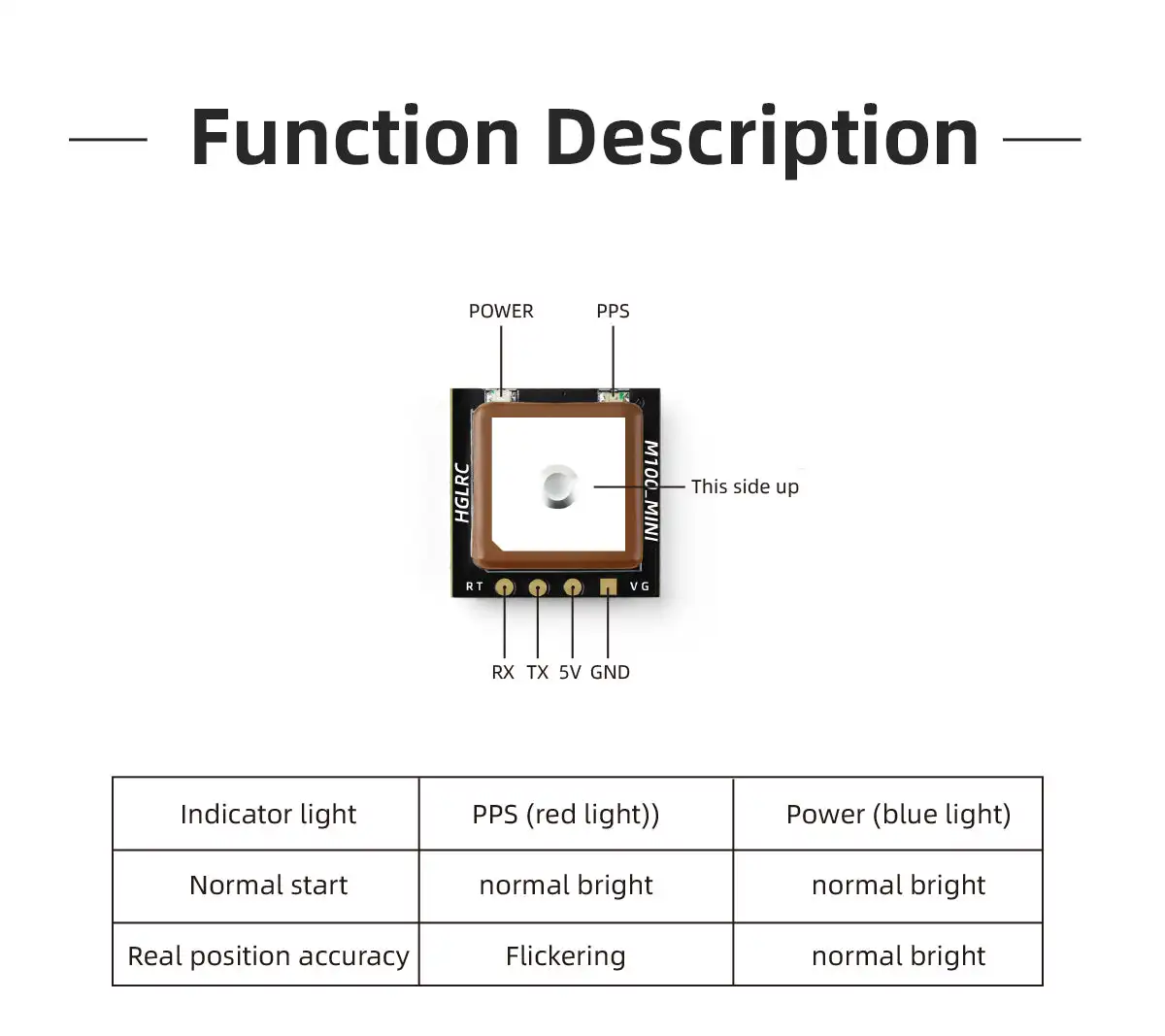 MINI GPSは衛星信号を効果的に受信できます。同時に、GPS GalileoとBDSの3つの衛星信号の受信をサポートしており、どのエリアでもすぐに位置を特定できます。皆様の便宜を図るため、GPSの動作状態をよく把握できるように、電源インジケーターや測位PPSインジケーターなどのオンボードLEDインジケーターを設計しました。
