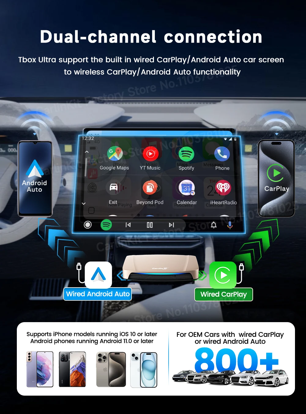 A: オリジナルの CarPlay と Android Auto のデュアルモードをシームレスに切り替えることができます。