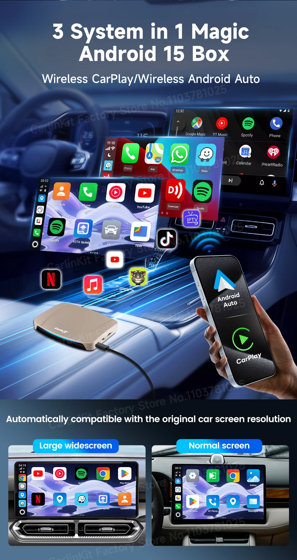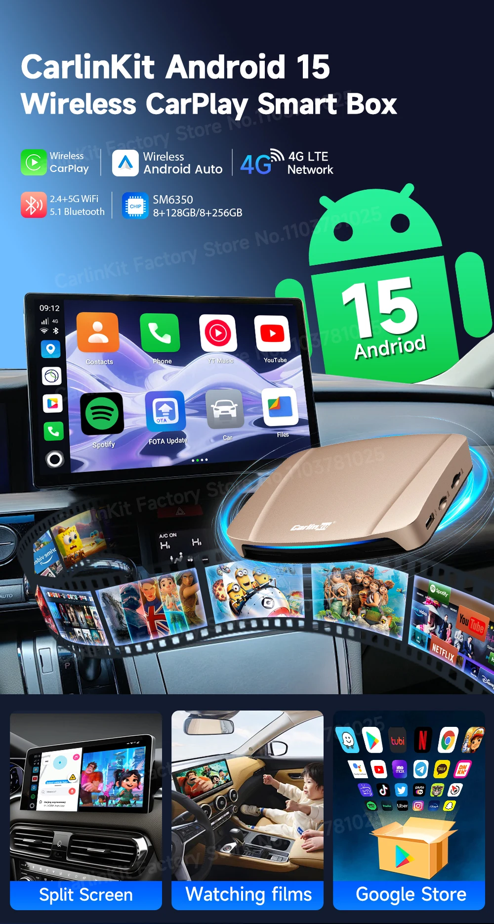 カーリンクット CarPlay Android Auto AIボックス Android 15 5.8G Wifi GPS YouTube Netflix QCM6350 S25d9944983732