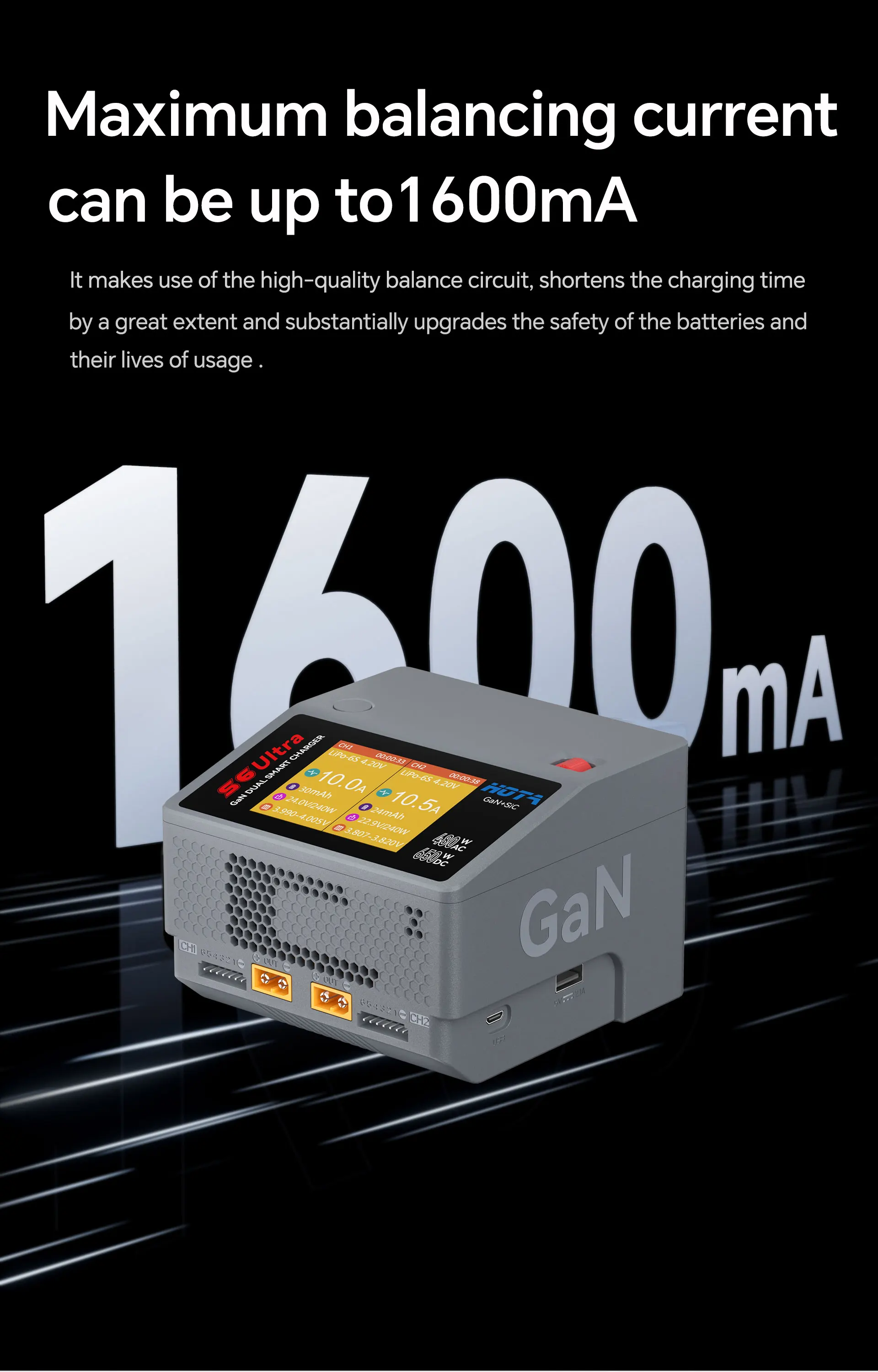 A: 各チャンネルで1600mAのバランス電流をサポートしています。