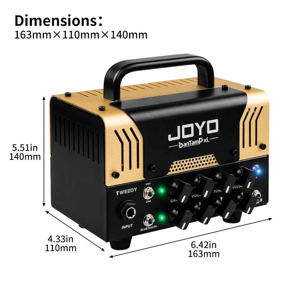 JOYO BanTamP XLシリーズは、チャンネル切り替えフットスイッチ、8つのノブを特徴としています。具体的には、2つのチャンネルを個別に制御でき、CLEANチャンネルとDISTORTIONチャンネルのボリューム、およびそれらのGAIN、TONE、VOLUME、VOICEを個別に調整できます。 JOYO BanTamp Tweedyは、デュアルチャンネル、アメリカンクラシックビンテージトーンを特徴としており、DISTORTIONにはわずかなFUZZがあり、CLEANサウンドには豊かな低音が特徴です。20世紀のクラシックロック&ブルースを再現しています。特に、このアンプをユニークにしているのはVOICEノブで、ギター演奏に合わせてミッドをブーストまたはアッテネイトできます。一方、VOICEノブとGainノブを組み合わせることで、より興味深いトーンを得ることができます。 JOYOのペダルJF-14 American Soundが市場で高く評価されているように、TWEEDYはJOYOで最も人気のあるペダルであるこのペダルのトーンに基づいて設計されており、JOYOファンはこのサウンドに精通しているはずです。このチューブアンプがいかに優れているかを想像できるでしょう!