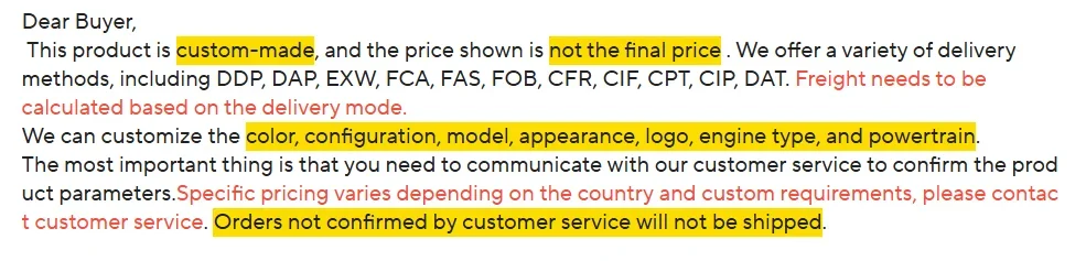 この製品はオーダーメイドであり、表示されている価格は最終価格ではありません。 DDP、DAP、EXW、FCA、FAS、FOB、CFR、CIF、CPT、CIP、DATなど、さまざまな配送方法をご用意しています。 配送モードに基づいて運賃を計算する必要があります。