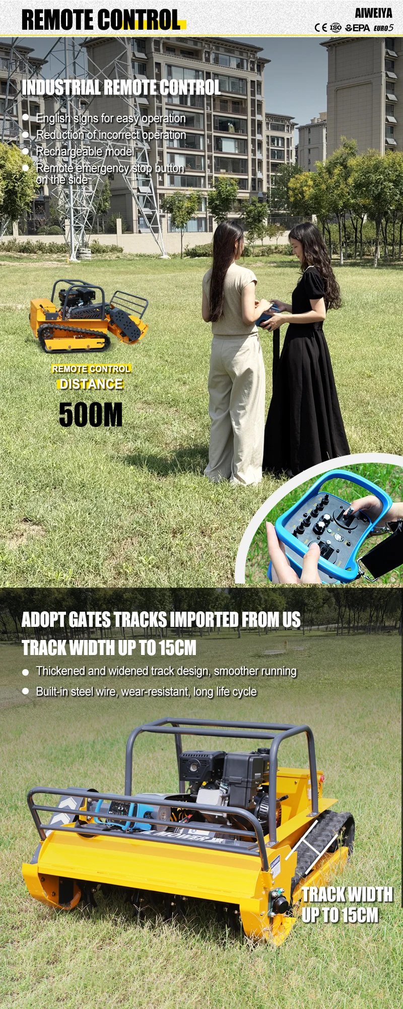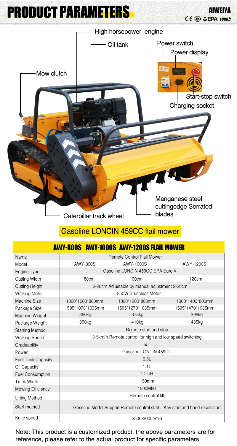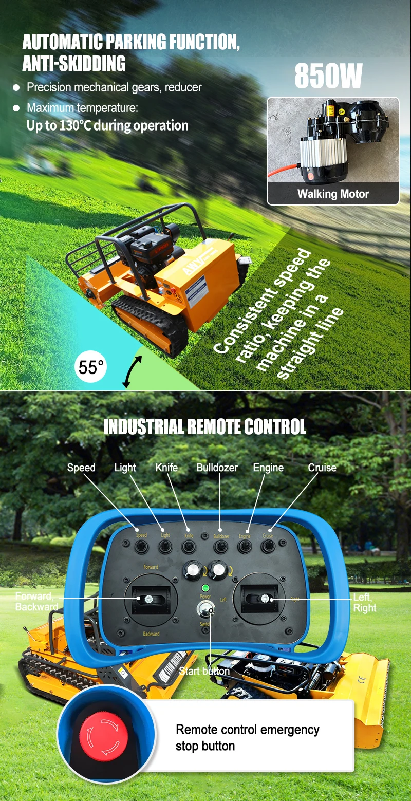 カスタマイズされた800mm-1200mm全地形対応リモコン芝刈り機4ストローク無線操縦トラック式芝刈り機傾斜地用芝刈りロボット S25o0808596607