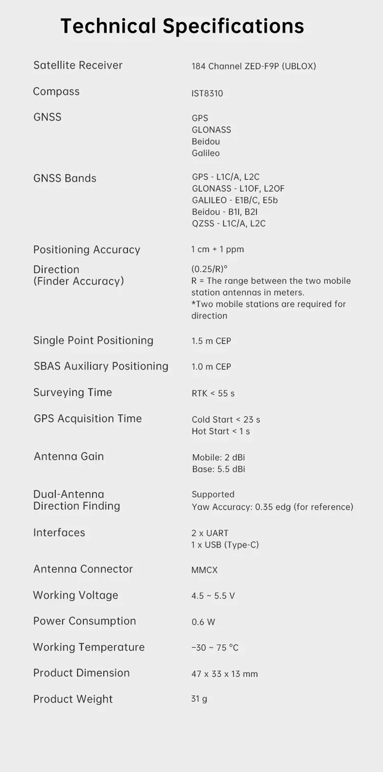 SIYI F9P RTKモジュールセンチメートルレベル4衛星マルチ周波数ナビゲーションおよび測位システムアクセサリーRCパーツ