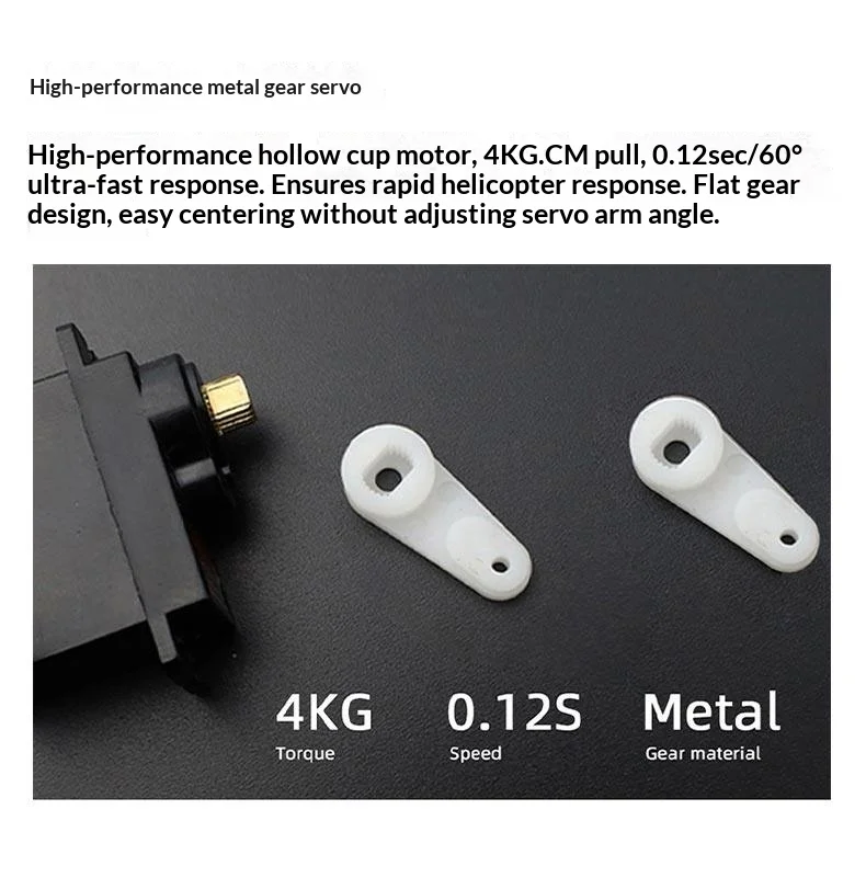 4 kg·cmトルク / 0.12秒・60°応答の高速サーボを搭載。