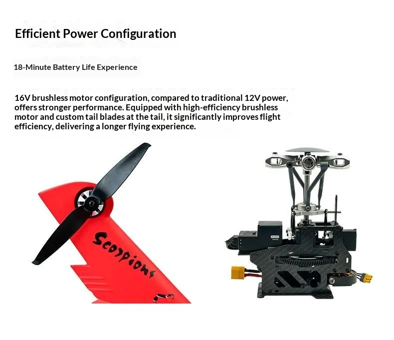 カスタムテールブレードで推進効率と飛行時間を改善。