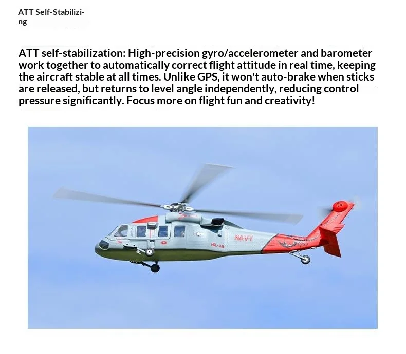 ATT自己安定化モード:高精度ジャイロと加速度計が姿勢を自動補正。
