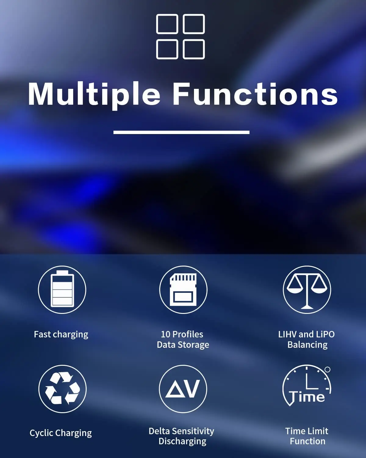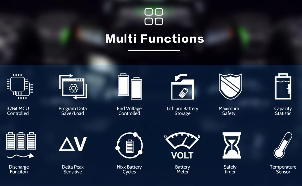 AC / DCバランス充電器は、強力で便利なさまざまな機能を提供します。デジタル電源設定により、ユーザーは追加のDC電源機器に電力を供給でき、プリチャージ機能により、放電しすぎたリチウムバッテリーを節約できます。さらに、すべての一般的なバッテリータイプとの互換性は、バッテリー充電器がバッテリー管理ニーズに対応するオールインワンソリューションであることを意味します。LiPo / LiHV / LiFe(1~6秒)NiMH / NiCd(1~15セル)Pb / SLAスマートバッテリーなど。