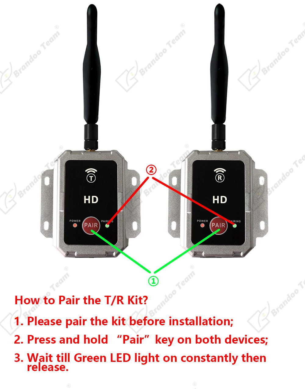 1. このシステムを初めて使用するときに、受信機と送信機をペアリングします。