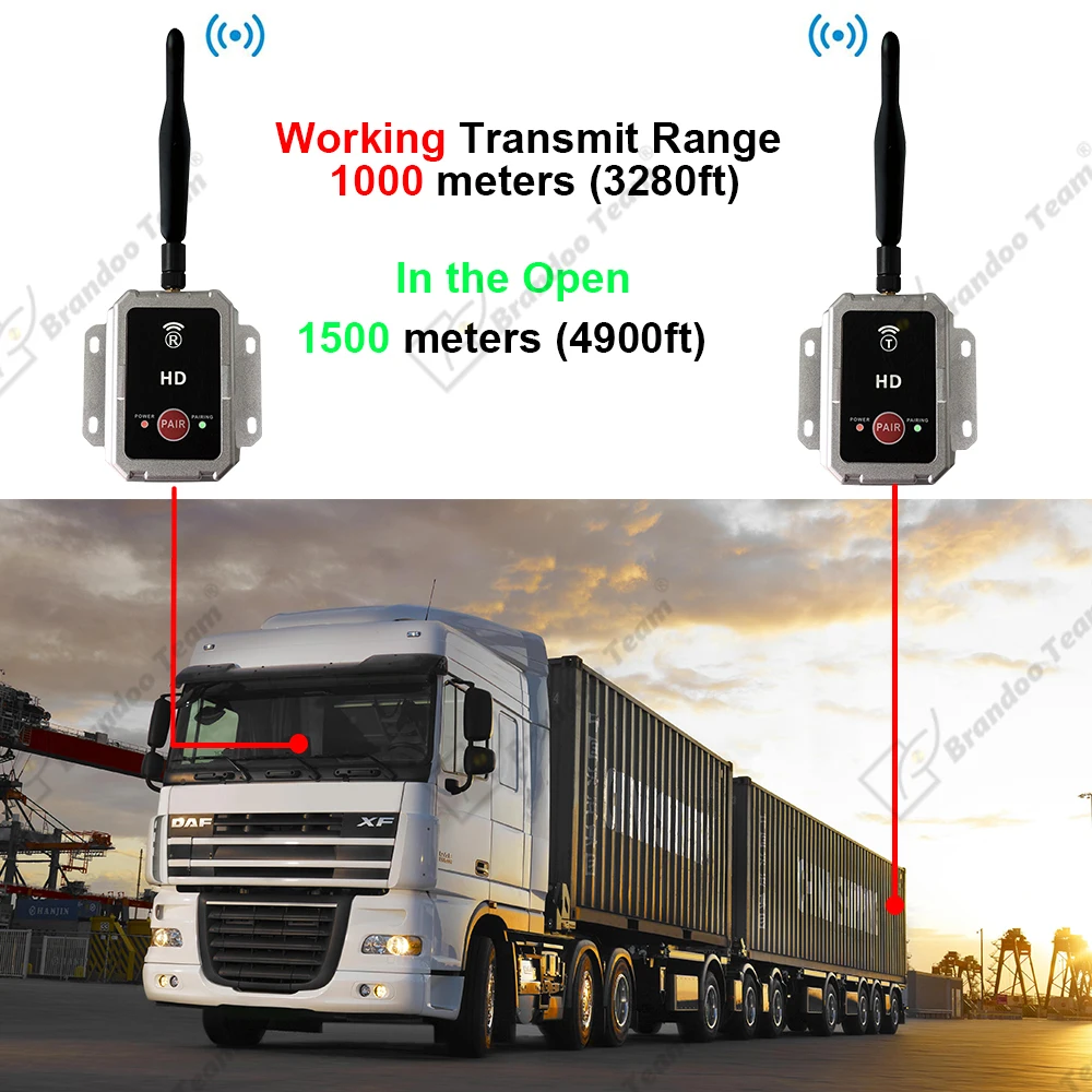 これは長距離ワイヤレスHDビデオトランスミッターとレシーバーキットです。ワイヤレス動作距離は1000~1500メートルです。主にトレーラー付き長距離車両、キャンプ用トレーラートラックで使用されます。