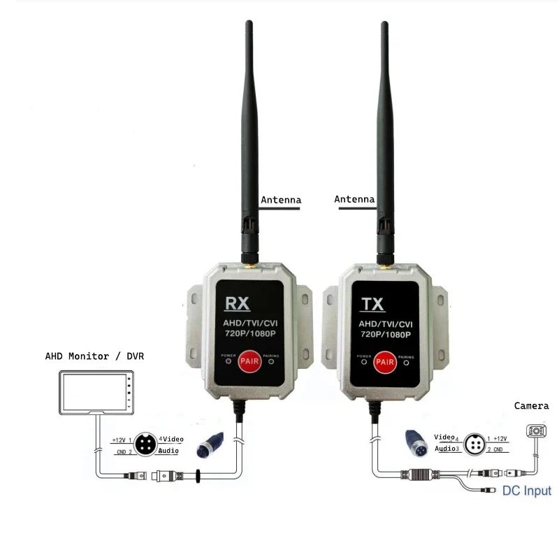 ワイヤレスからAHD有線カメラシステムを可能にする1080Pワイヤレス送信機/受信機!