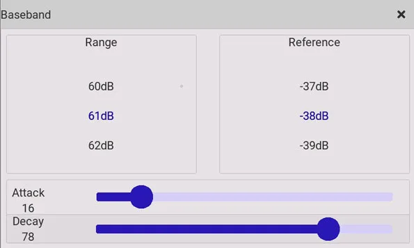 - 表示グラフィックはスケーラブル:ベースバンド - IF1 - IF2(MPX) - ウォーターフォール - オーディオ - RDS - Sメーター