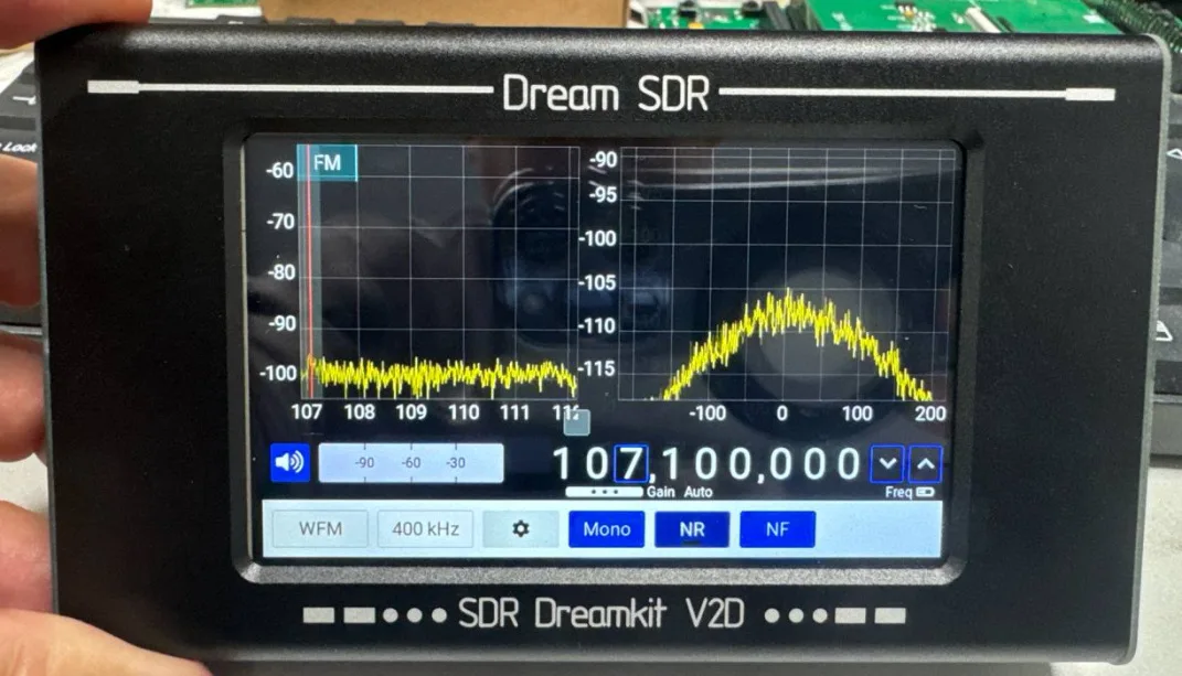 ポータブル無線受信機HAMGEEK SDR Dreamkit V2Dは、ラジオを聴きながら同時にスペクトルを表示するように設計されています。これにより、無線環境を評価し、興味のある波にチューニングすることができます。このデバイスは、バッテリーを内蔵した耐久性のあるアルミニウムケースで作られているため、実験室でも現場でも使用できます。このデバイスは、アマチュア通信の無線制御や無線送信機器の修理に携わっている方。デバイスには有線ヘッドフォンを接続でき、さらに2Wスピーカーが内蔵されています。デバイスには4インチの抵抗膜式タッチディスプレイが装備されています。自律動作時間 - 4時間。
