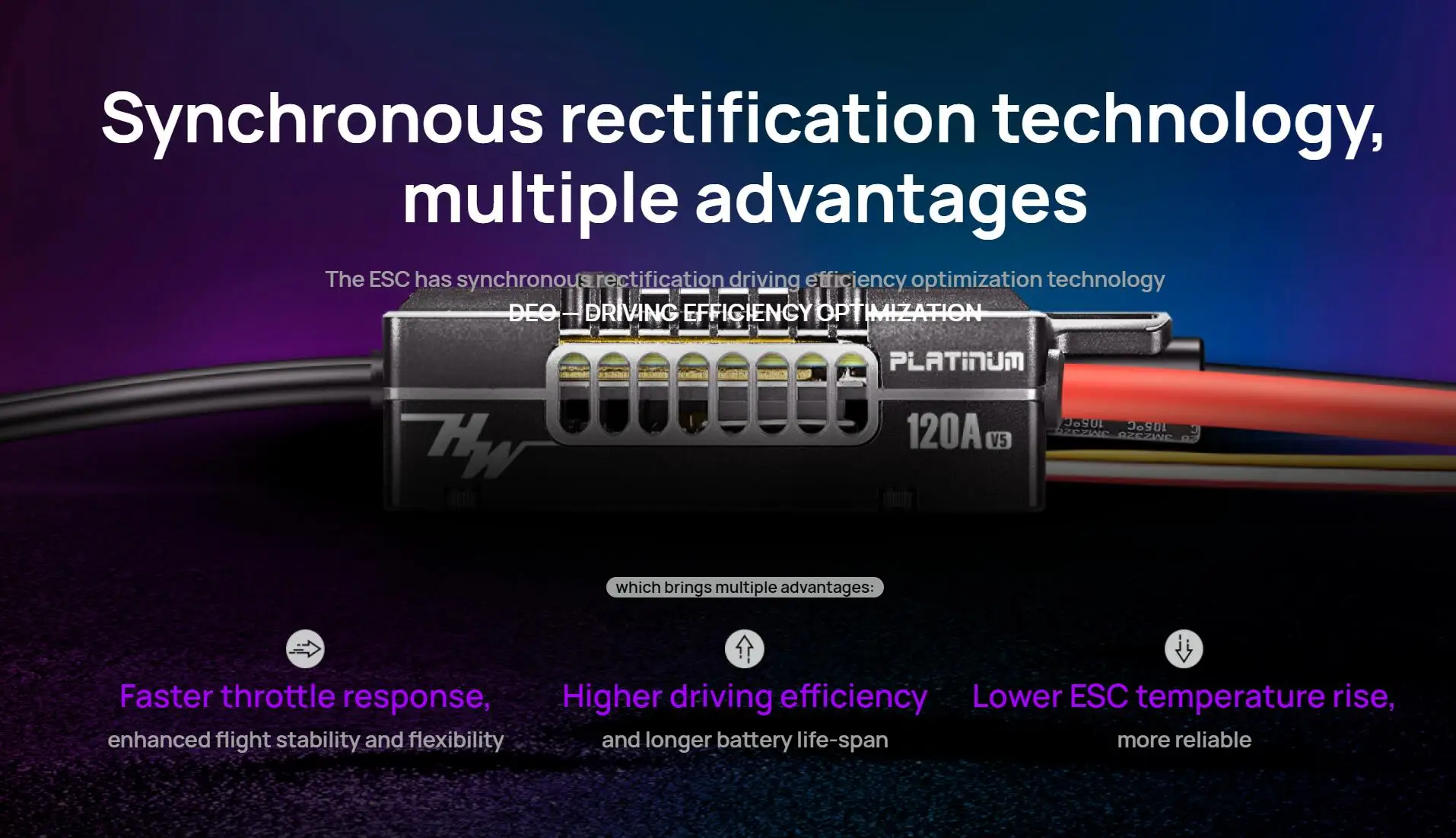 Platinum V5は市場の他のESCとどのように比較されますか?パイロットが情報に基づいた決定を下せるよう、Hobbywing PlatinumとV5の直接比較を以下に示します。 V5と2つの人気のある代替品:機能Hobbywing Platinum V5 120ACastle Creations Phoenix 120ATurnigy Plush 120A最大連続電流120A120A120A最大バースト電流150A150A130Aバッテリーサポート3S-8S LiPo4S-8S LiPo4S-6S LiPoBEC出力5V / 3A(内蔵)5V / 3A(内蔵)5V / 2A(内蔵)放熱空モールド+アルミヒートシンク標準モールドケース標準モールドケースプログラミングオプションUSB-C + HobbywingアプリUSB + Castle LinkUSB + Turnigyアプリ重量58g62g55gご覧のとおり、Platinum V5は、より広い電圧互換性(3S-8S)と、空モールド設計による優れた熱管理、USB-Cと公式Hobbywingアプリによる高度なプログラミングを提供し、ユーザーはブレーキとスロットルカーブのタイミングを完全に制御できます。