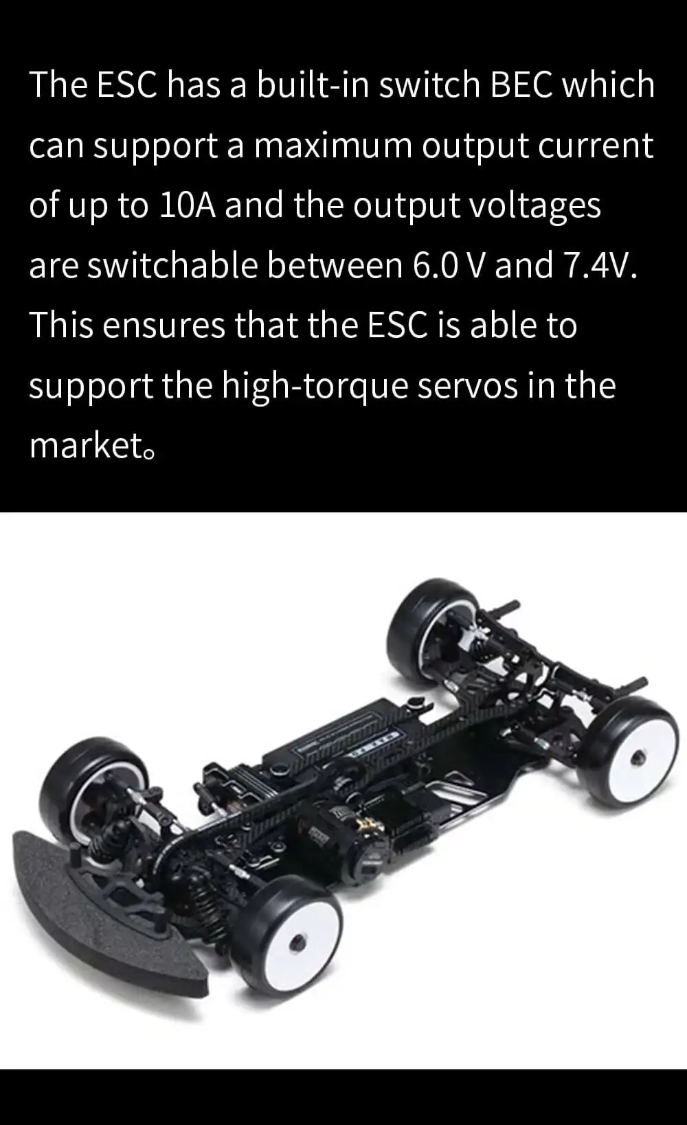 BEC出力: 6.0V 7.4V / 4A(スイッチBEC)