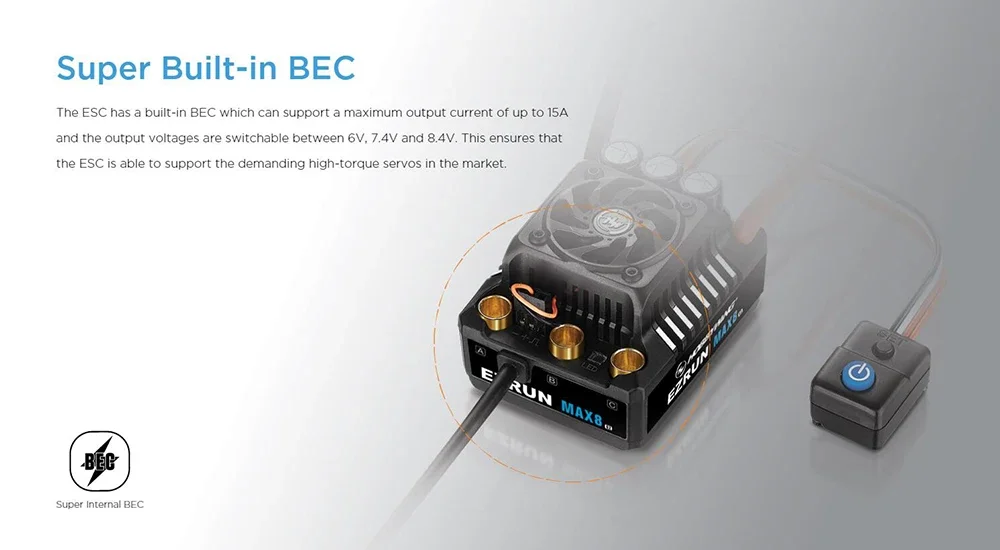 BEC出力:6V / 7.4V / 8.4V調整可能な連続電流6A