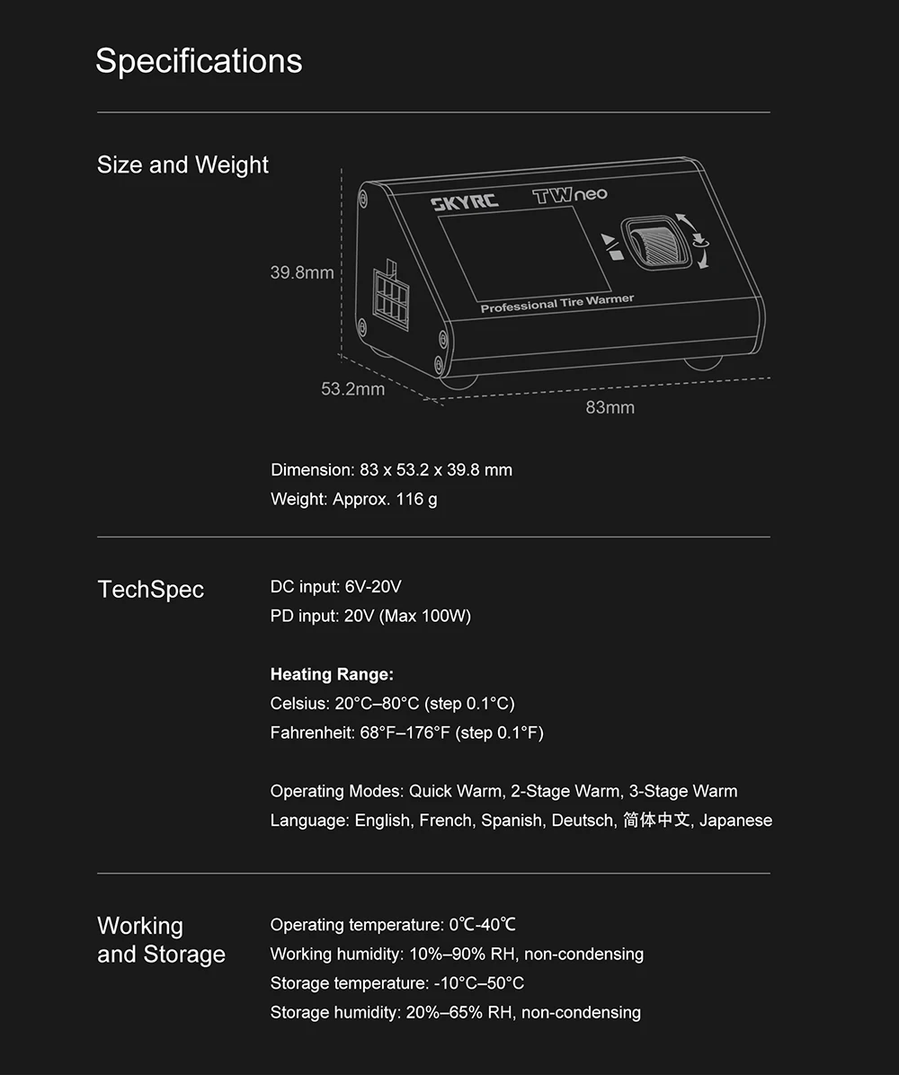 SkyRC TWneo RCタイヤウォーマーヒーター 20~80度C アプリコントロール 1/8 & 1/10 RCカータイヤ用 S25o0746673544