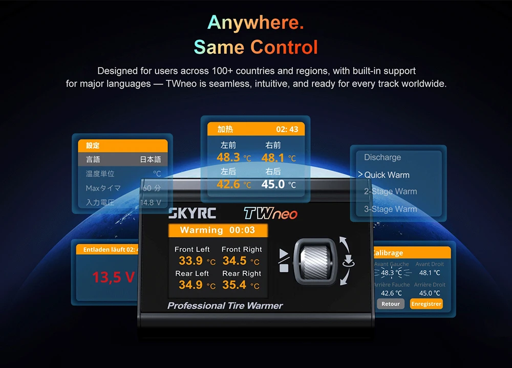 SkyRC TWneo RCタイヤウォーマーヒーター 20~80度C 独立した4輪温度制御 APP制御 1/8および1/10スケールのRCカー用1/10 RCオンロードカーレーシングタイヤ